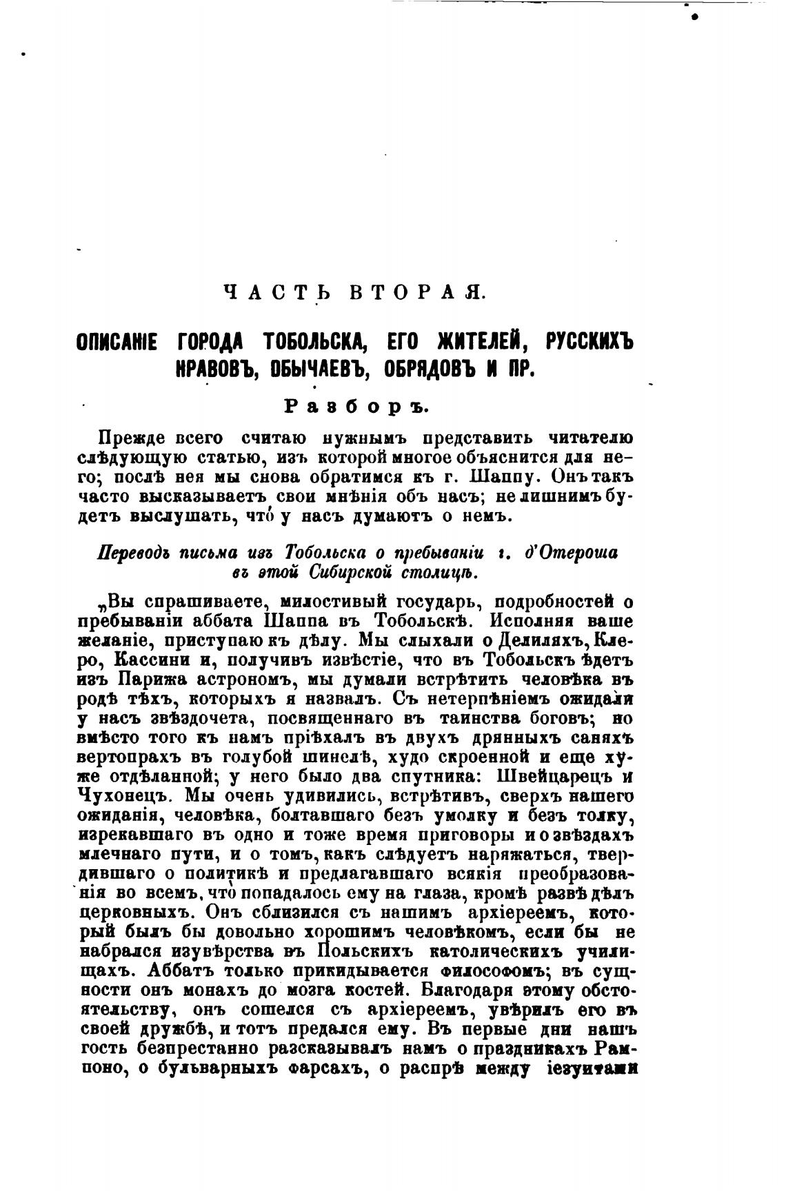 пребываюи аббата Шаппа въ Тобольскј. Исполняя ваше