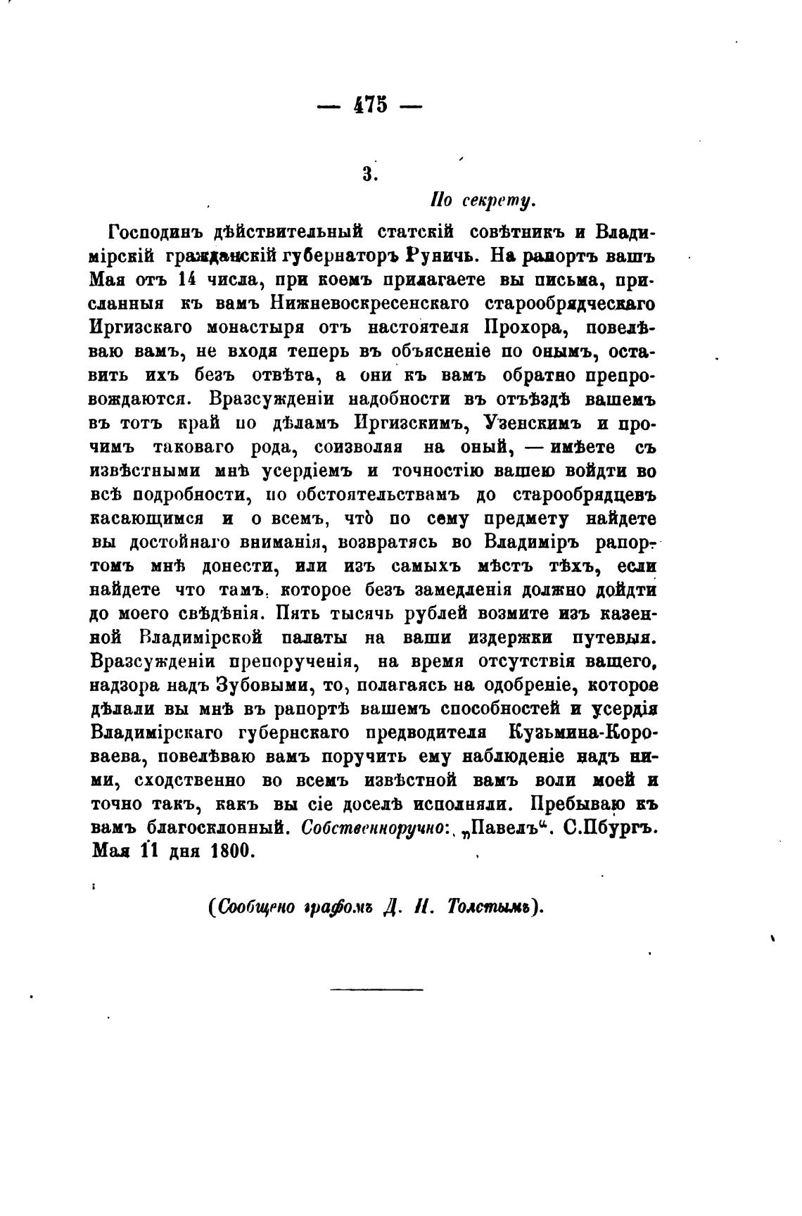 (С,ообщрно арафо.“б Д. И. Толстым).