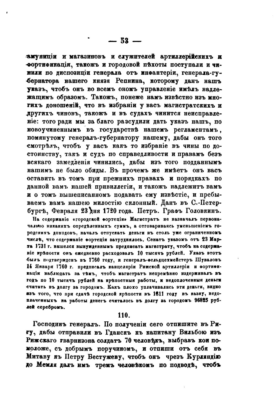 бургј, Февраля 23 ћня 1720 года. Петръ. Гра•ъ Годовкинъ.