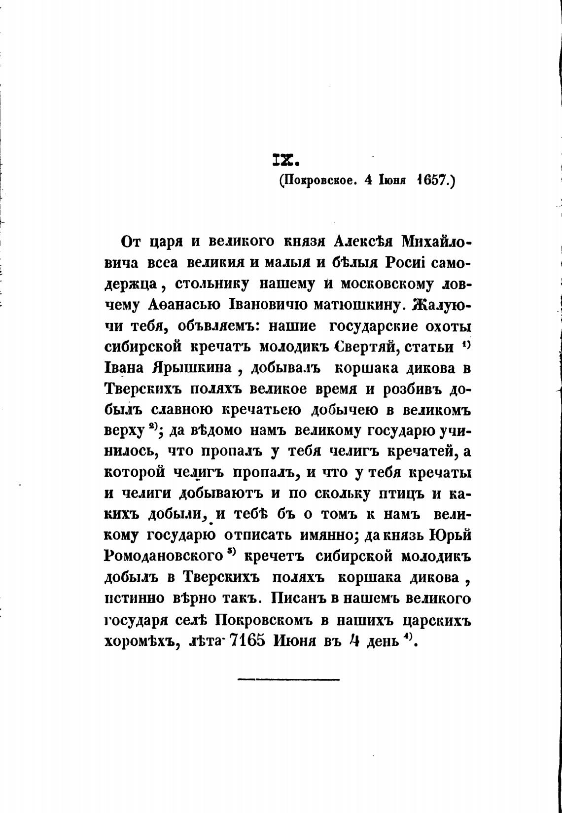 чи тебя, объвляемъ: нашие государские охоты