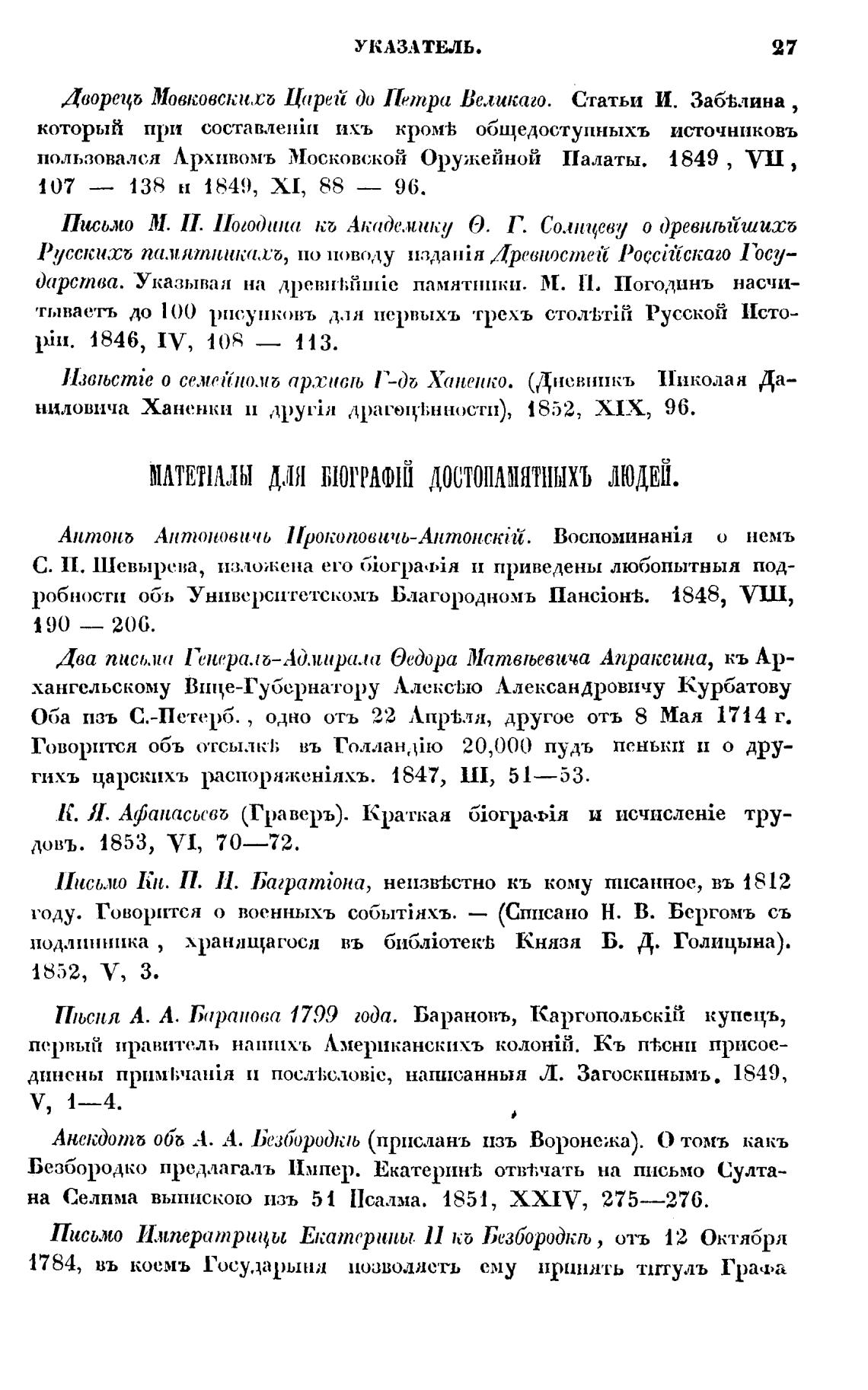 довъ. 1853, VI, 70—72.