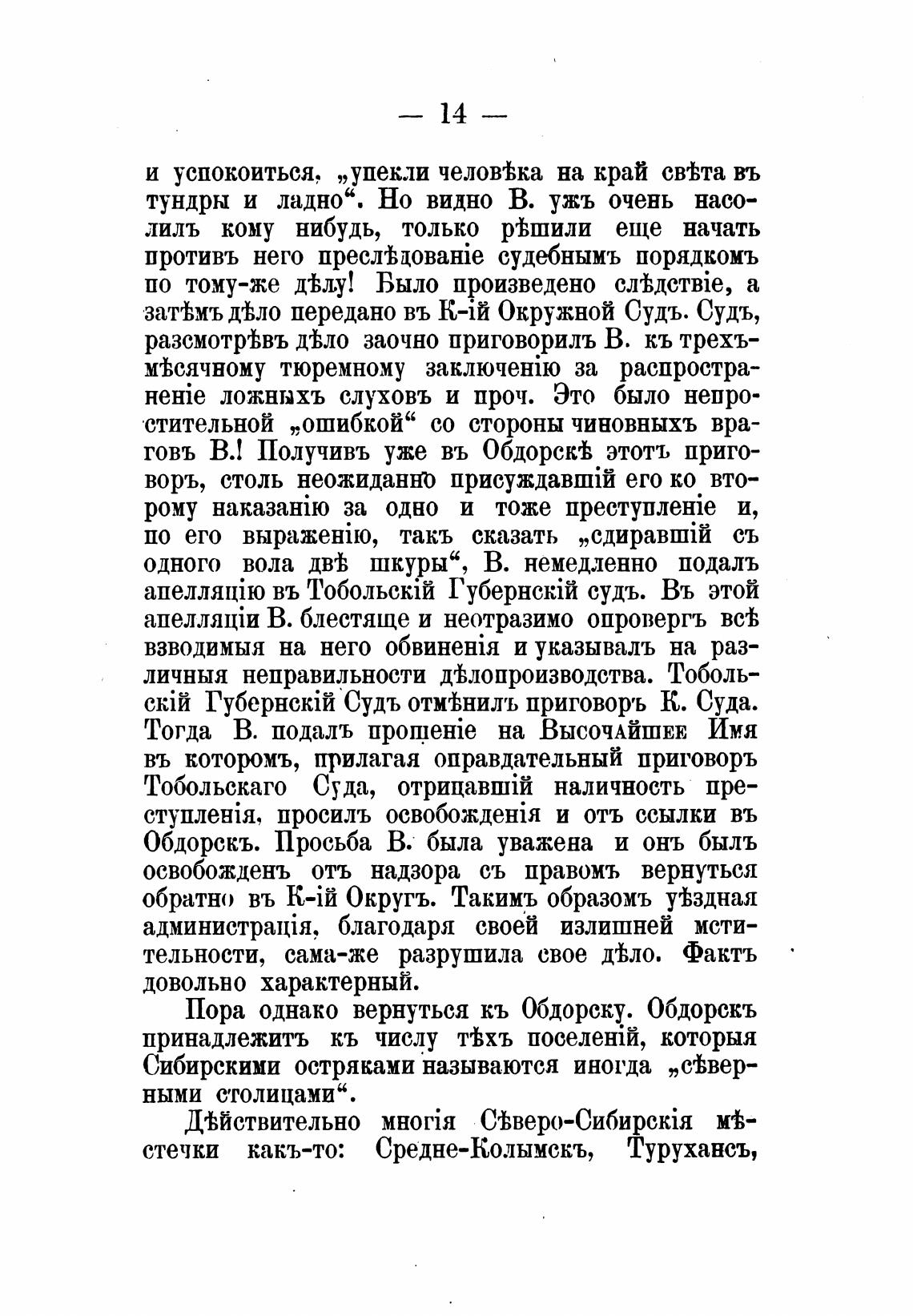 Обдорскъ. Просьба В. была уважена и онъ быль
