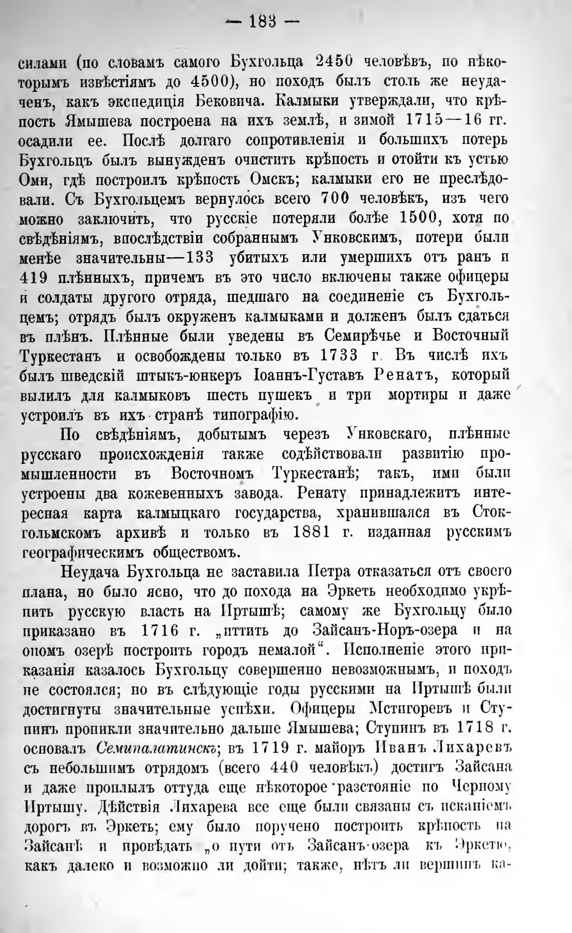 основалъ Семипалатинскг•, въ 1719 г. майоръ Ивань Лихаревъ