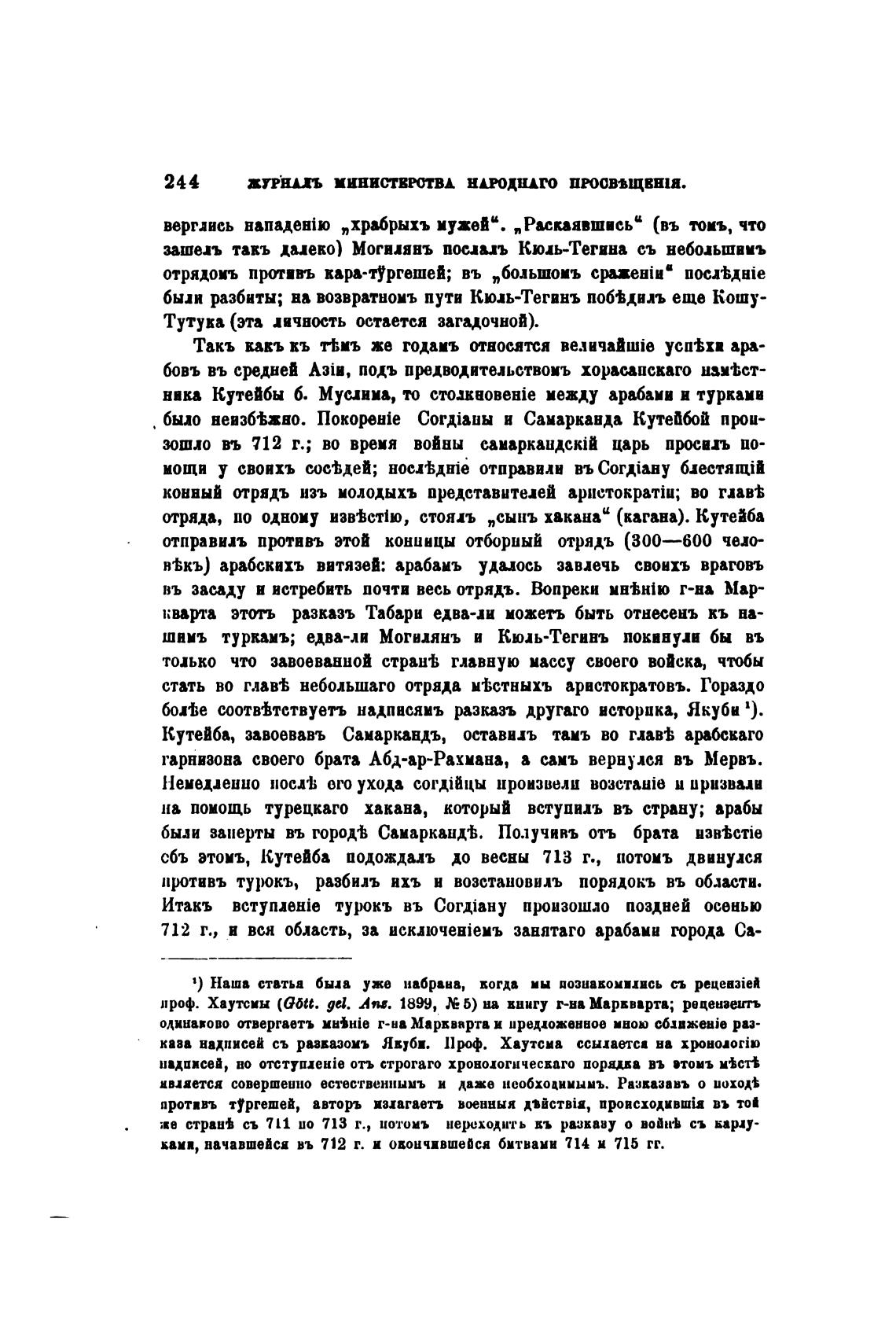 Кутейба, завоевавъ Самаркандъ, оставиъ тамъ во глав± арабскаго