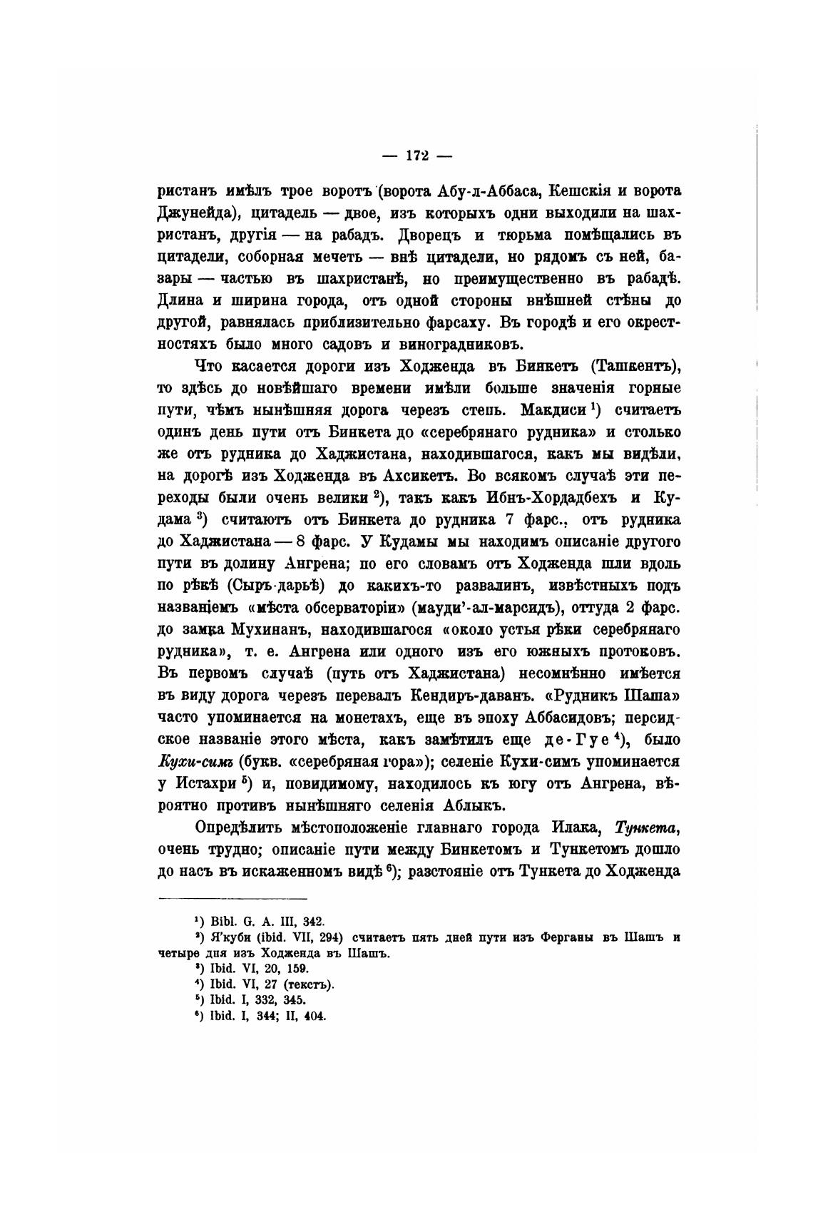 3) Я'куби (ibid. Vl[, 294) считаетъ пять дней пути изъ Ферганы въ Шашъ и