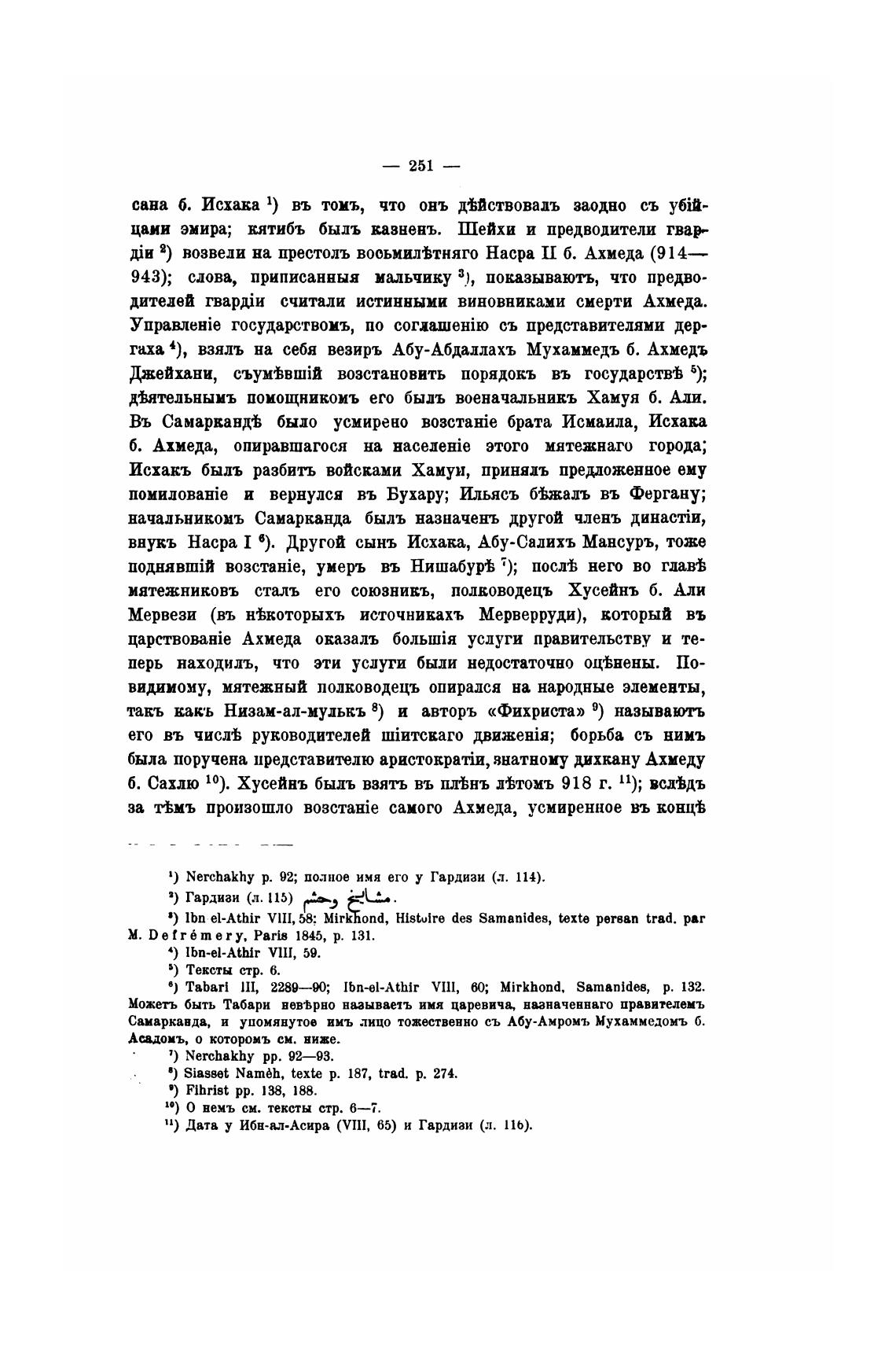 в) lbn el-Athir VlII, 58: Mirk ond, Histuire des Samanidu, texte ретввп trad. раг