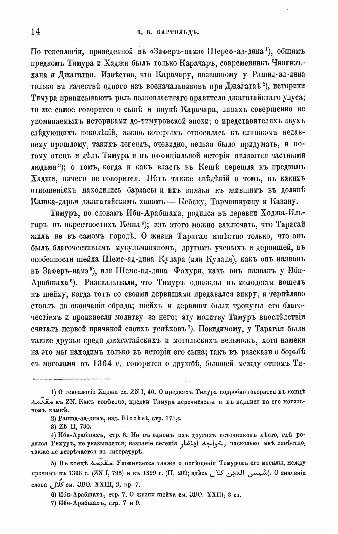 1) О Хаджи см. ZN Т, 40. О предкахъ Тимура подробно говорится въ концеЬ
