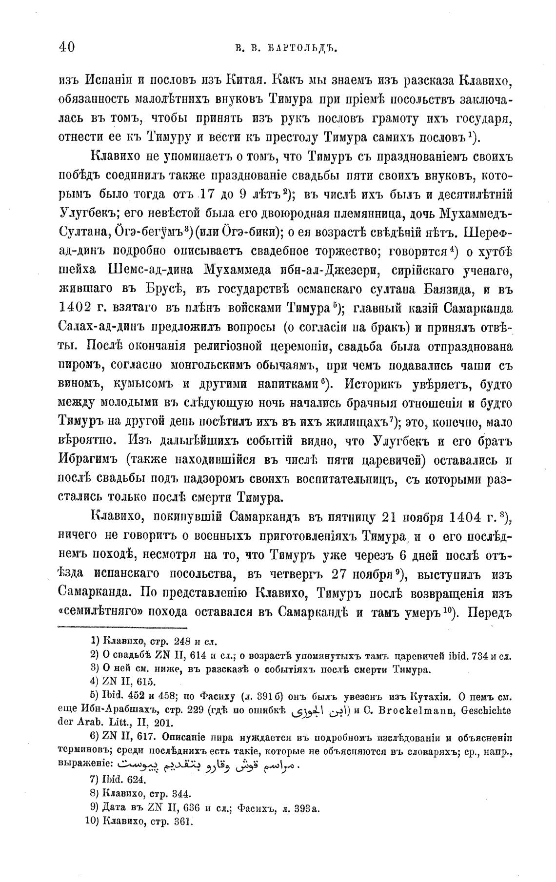 Клавихо не упоминаетъ о томъ, что Тимуръ съ своихъ