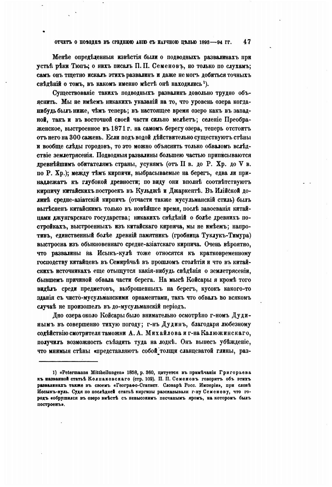 1) «Petermanns Mittheilangen» 1858, р. дО, цитуется въ Григорьева