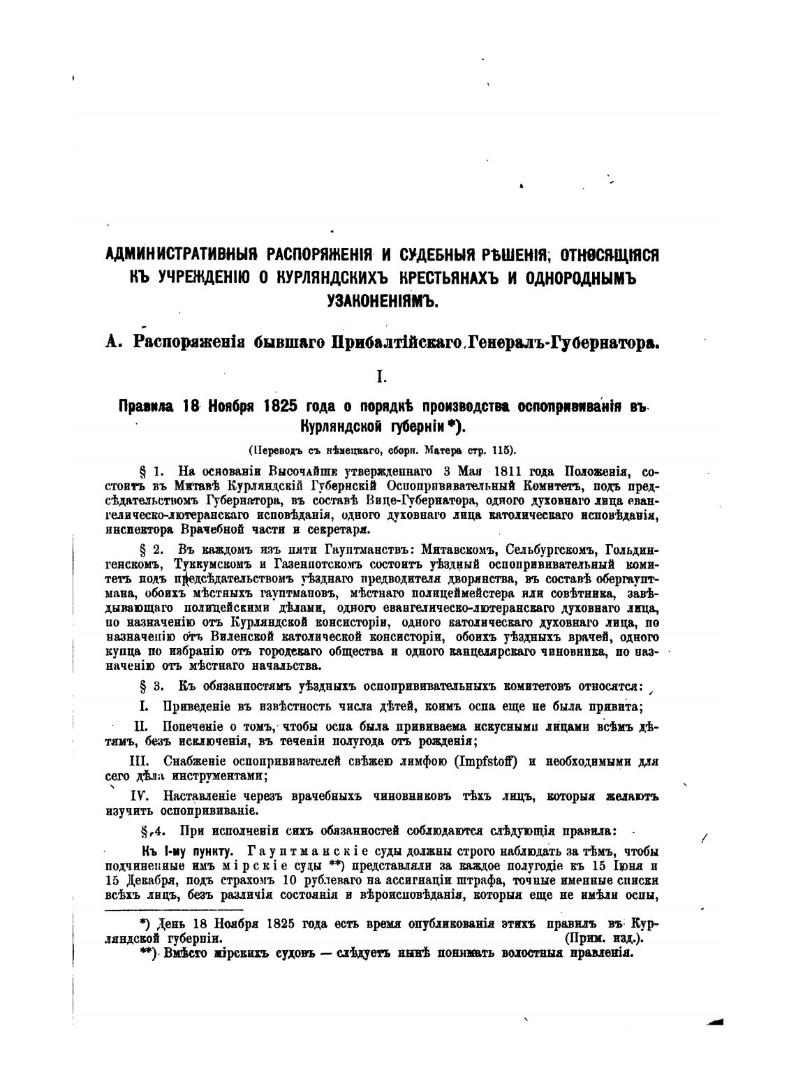 *) День 18 Ноября 1825 года время опубликовата этих% правил вь Кур-