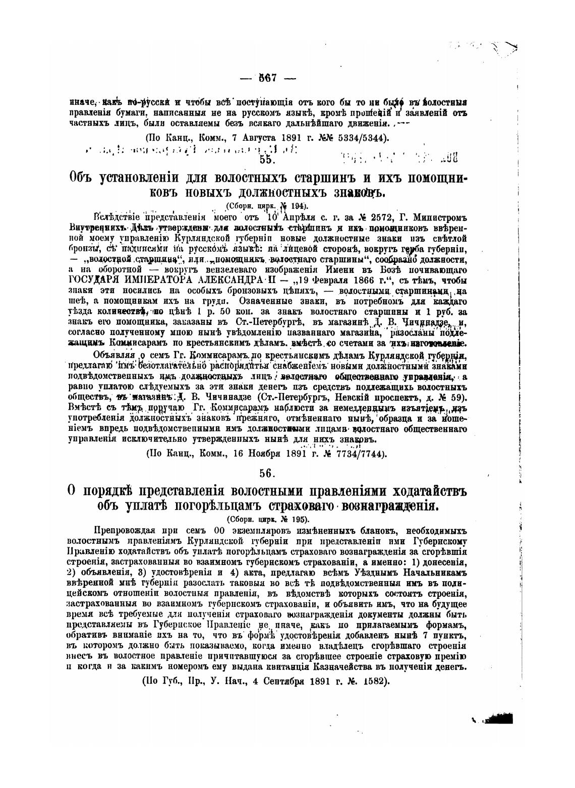 (По Канц., Комм., 7 Августа 1891 т. 5334/5344).