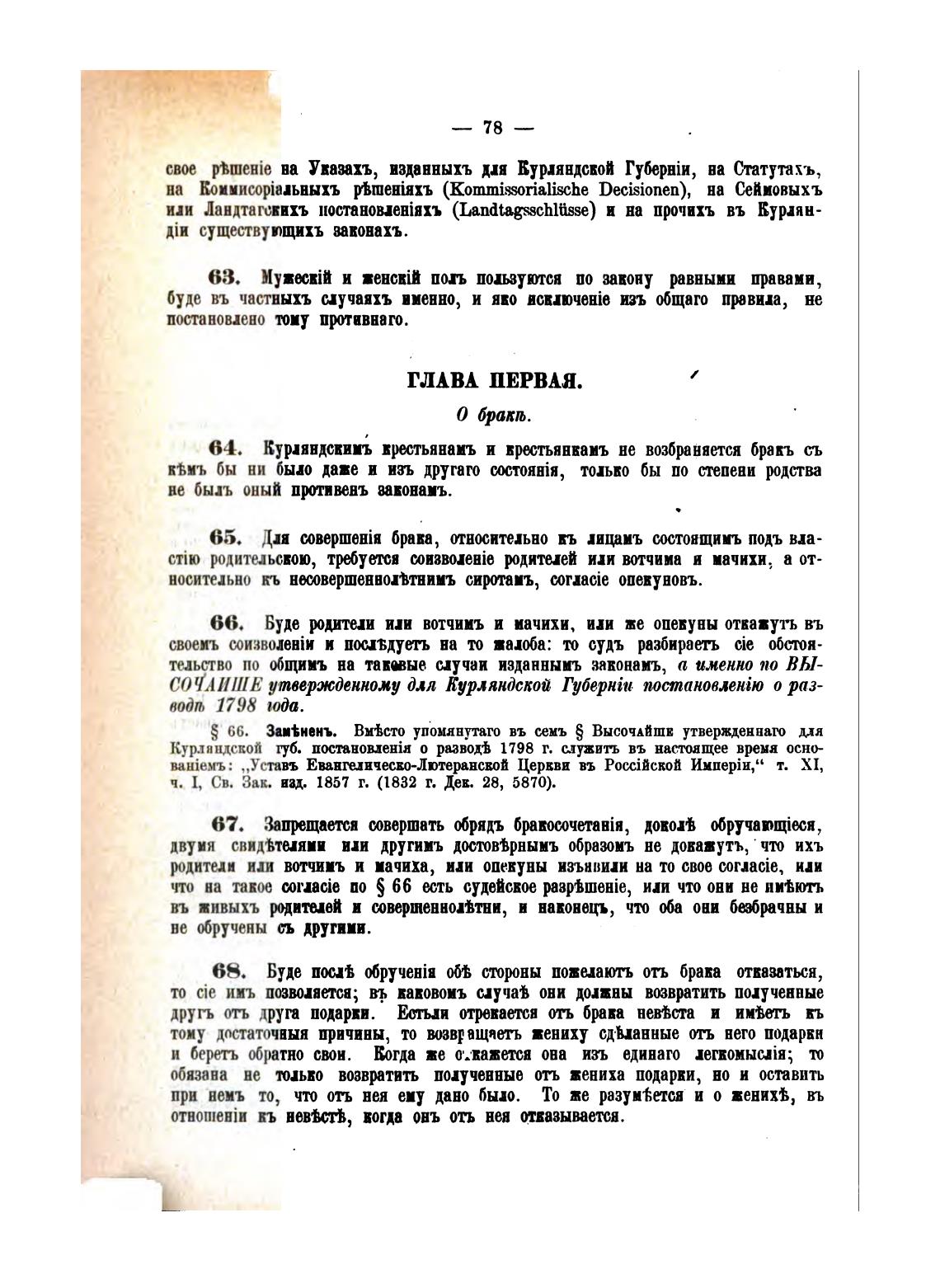 64. Куряндсвииъ в—ьянамъ и в—ъянвамъ не возбраняется бракъ съ