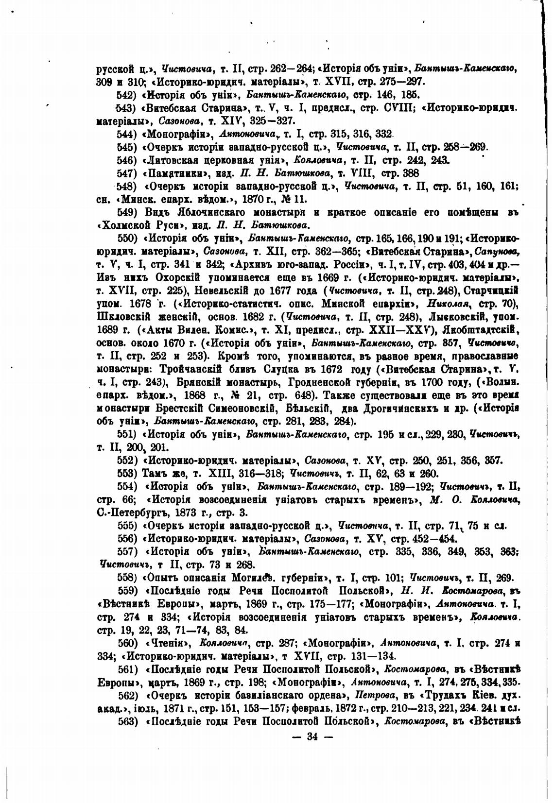 548) «Очеркъ HcropiH вападно-руссвой ц.), Чистоввча, т. П, стр. 51, 10, 161;