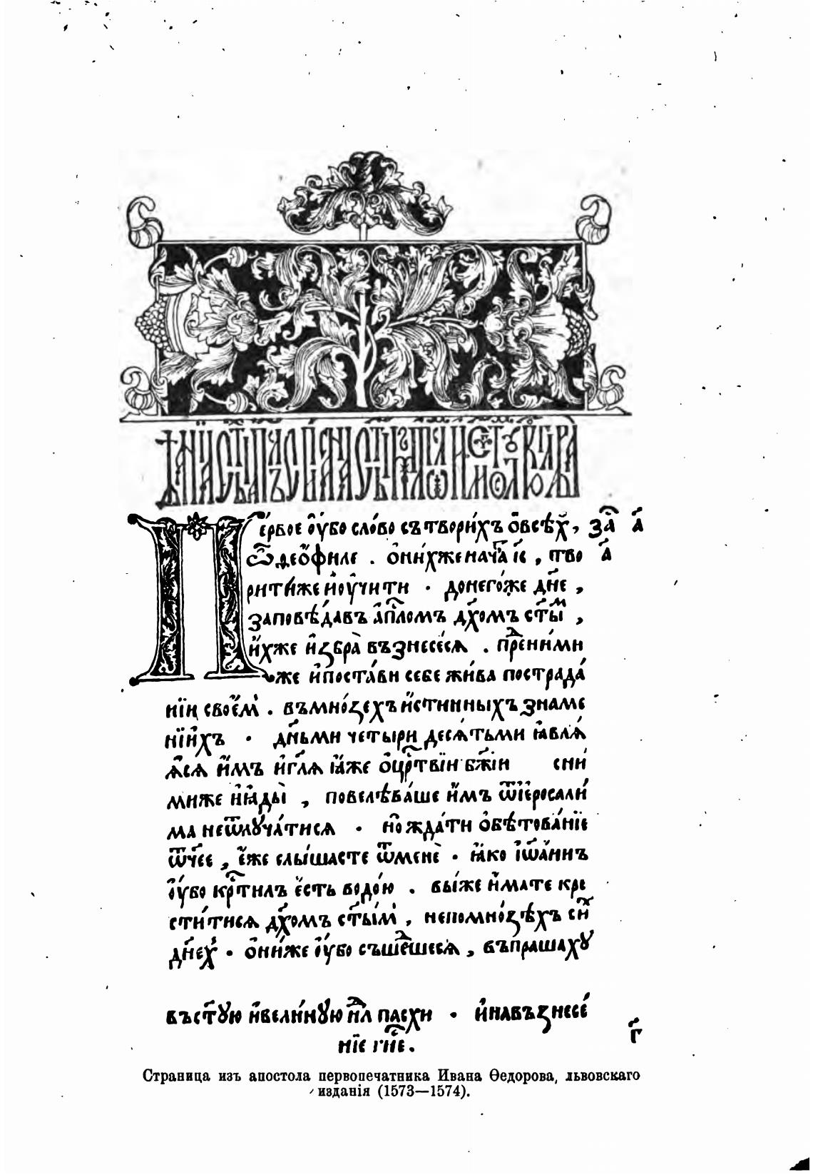 Страница изъ апостола первопечатника Ивана еедорова, дьвовскаго