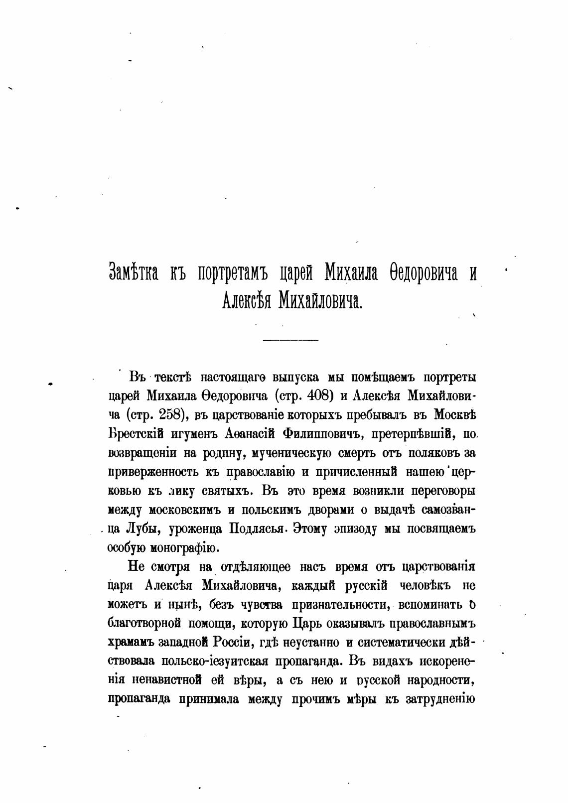 Замђтка кь портретамъ царей Михаила бедоровича и