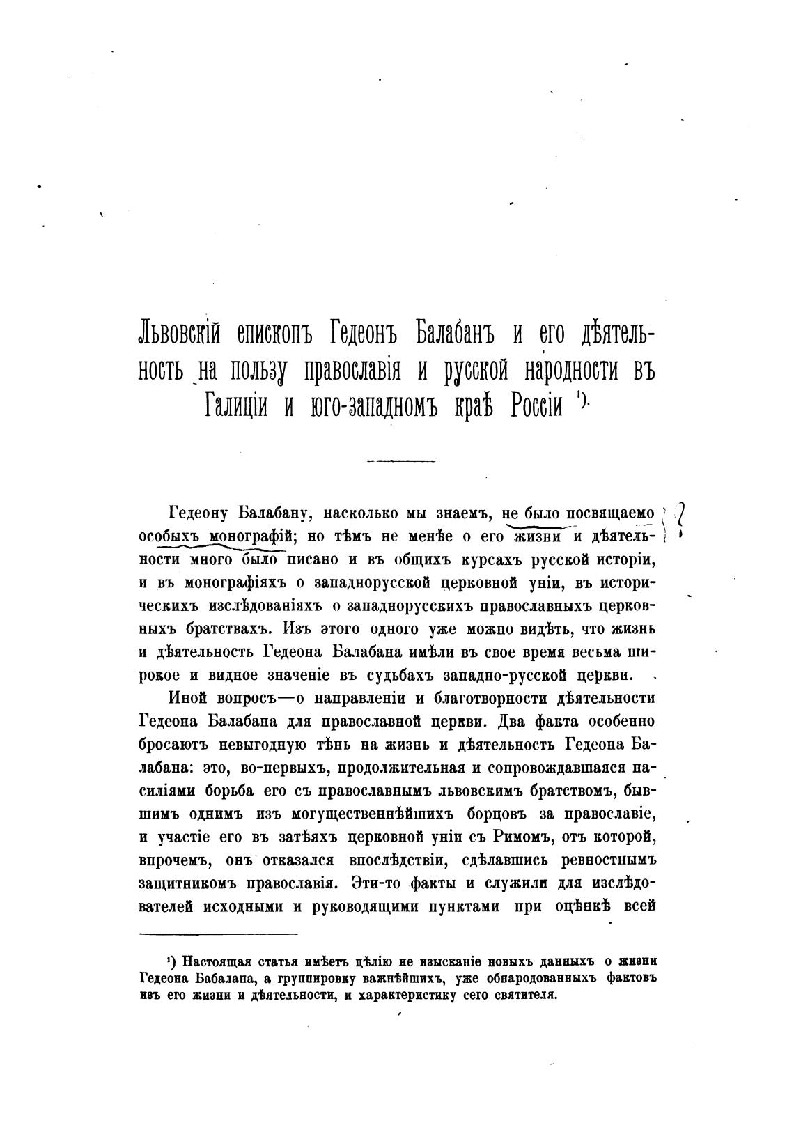 Львовскј епископъ Гедеонъ Балабанъ и его Оятель-