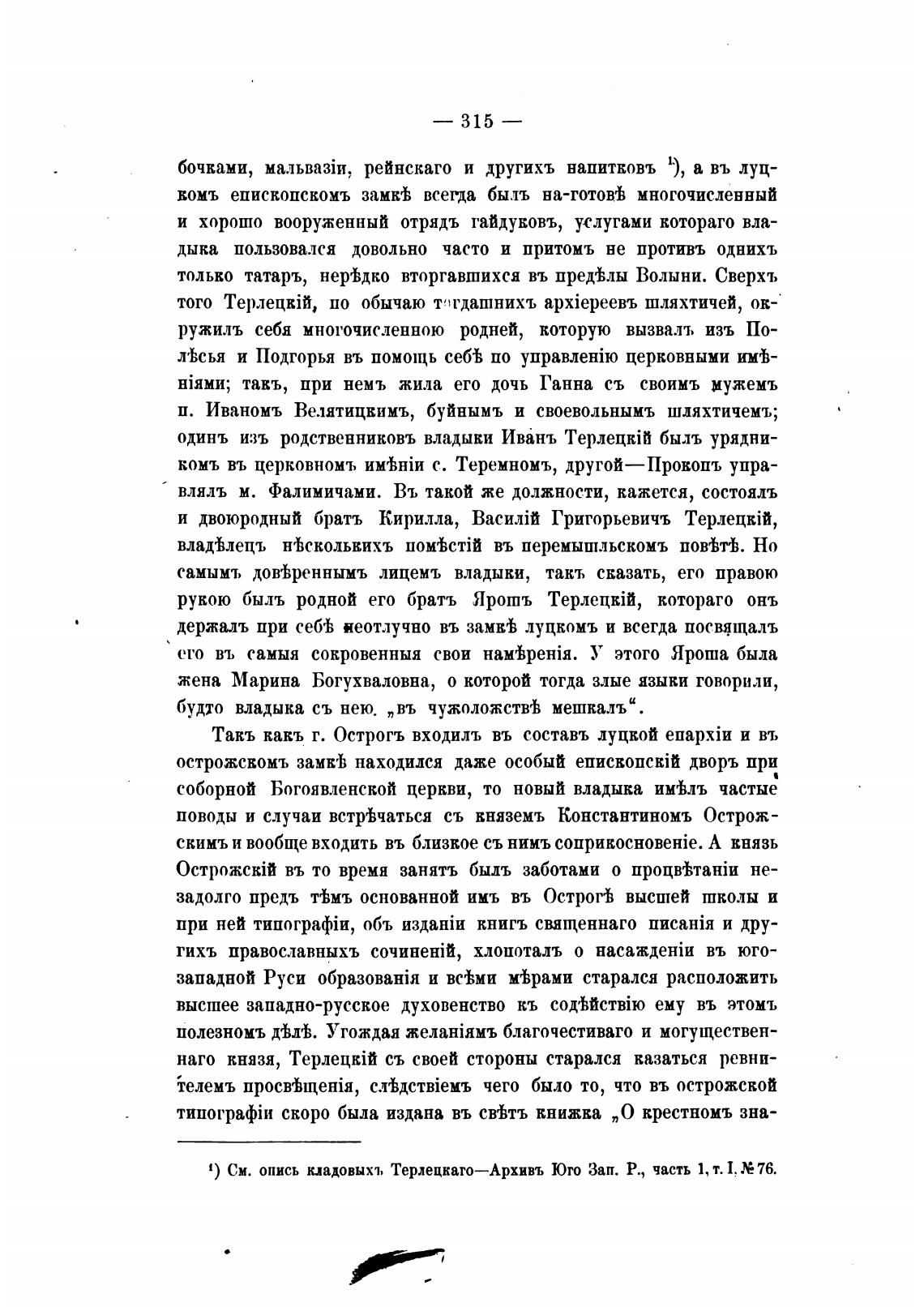 1) См. опись кладовыхъ Терлецкаго—Архивъ Юго Зап. Р., часть 1, т. 1. Е 76.
