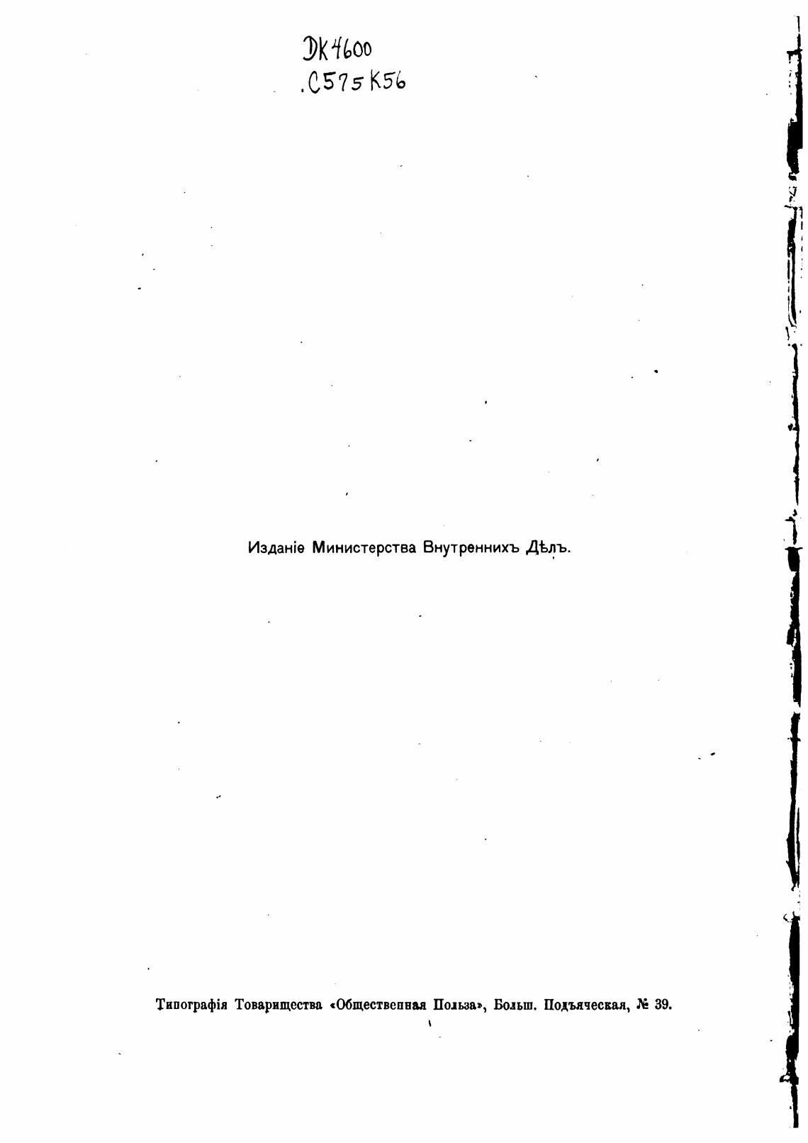 Министерства Внутреннихъ ДЬлъ.