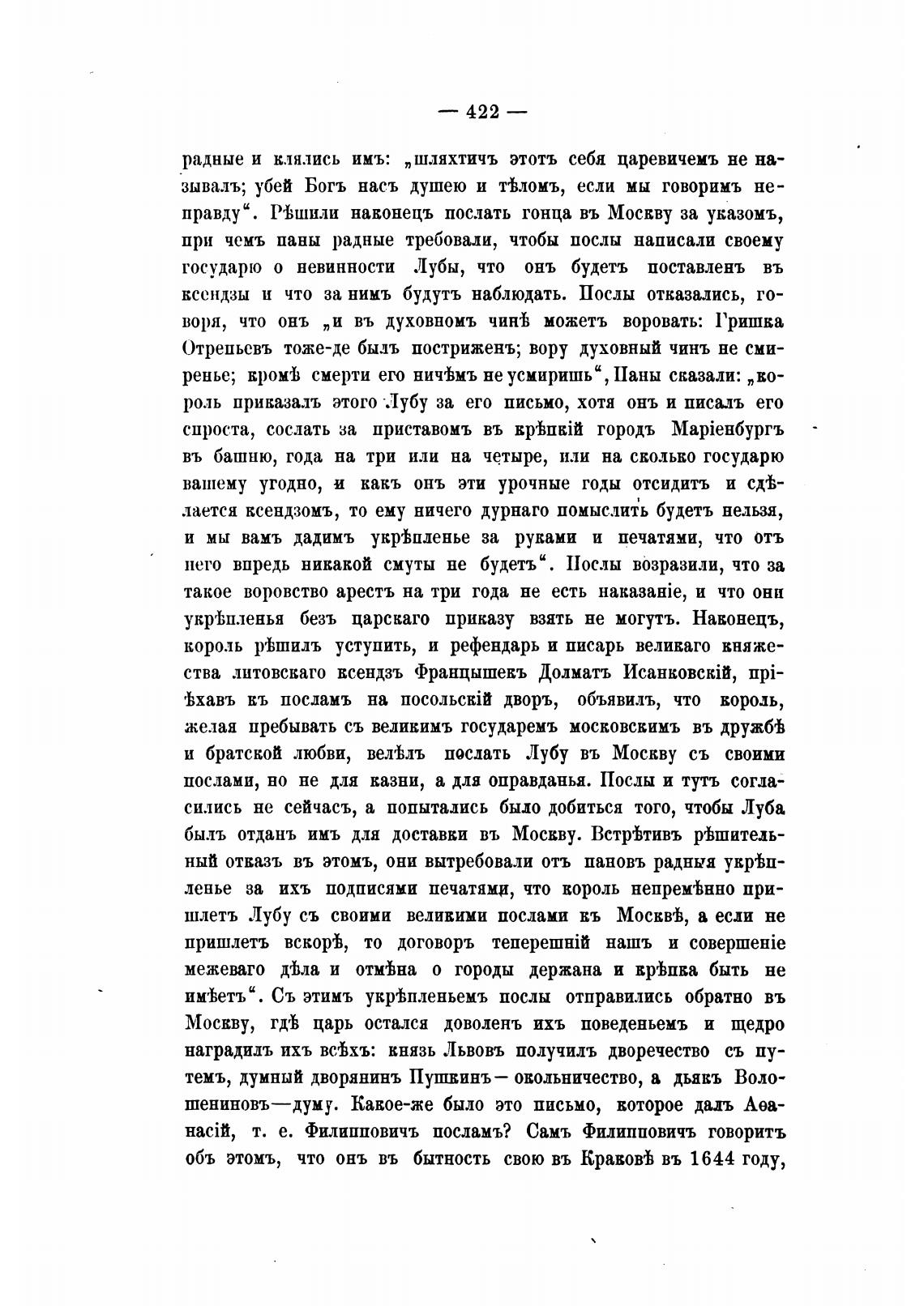 Москву, гд'ь царь остался доволенъ ихъ поведеньемъ и щедро