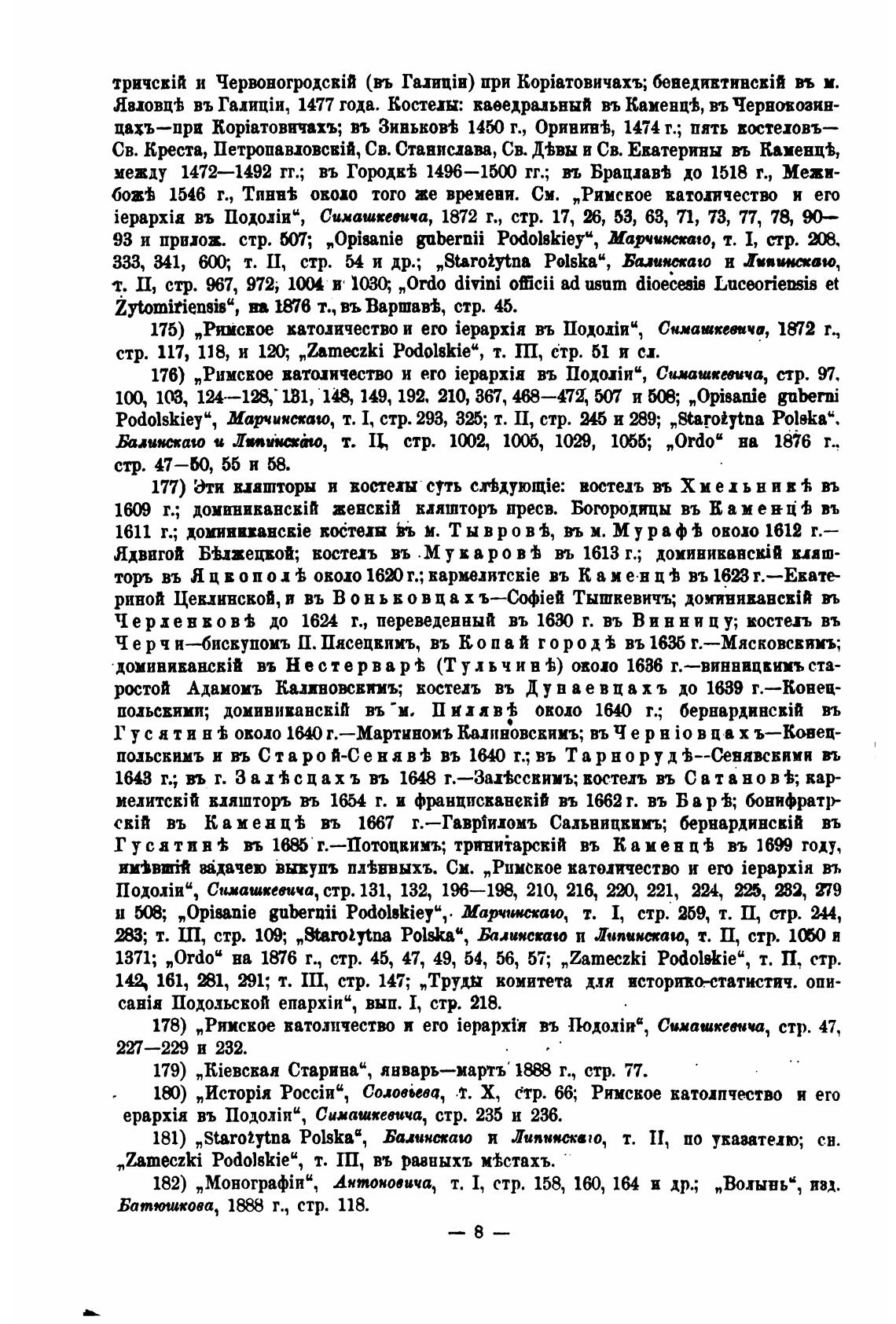 1371; „0rdo" на 1876 г., стр. 45, 47, 49, 54, 56, 57; „Zameczki Podolskieg, т. П, стр.