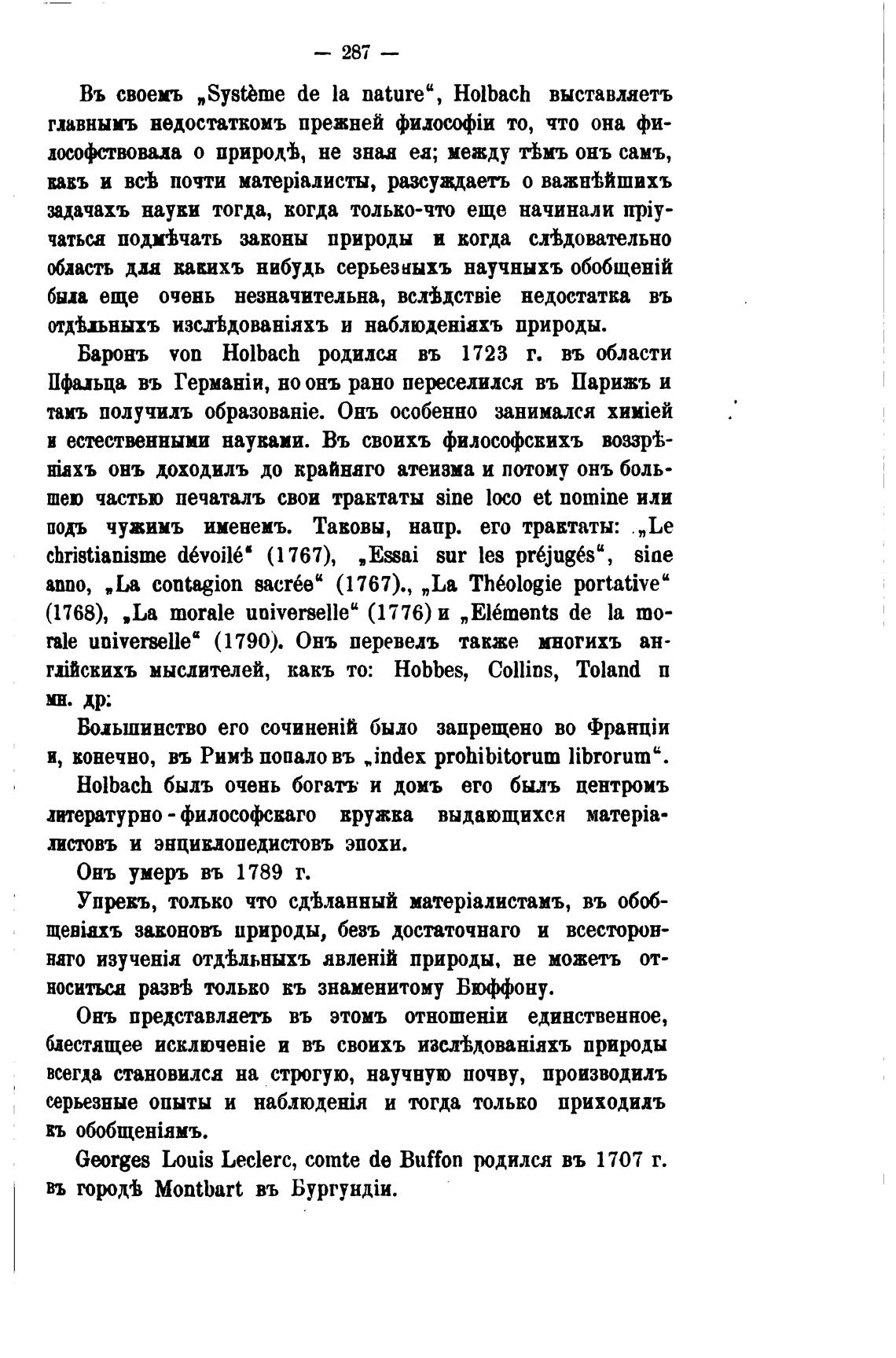 Въ своемъ „Systbme de la nature", Holbach выставляетъ