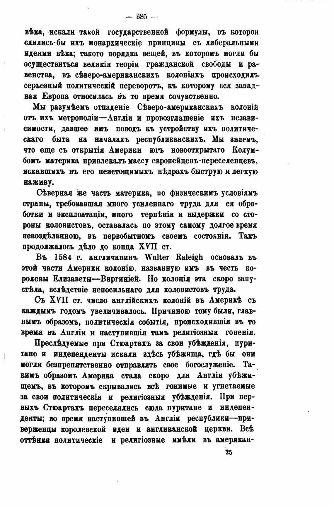 Въ 1584 'г. англичанинъ Walter Raleigh основалъ въ