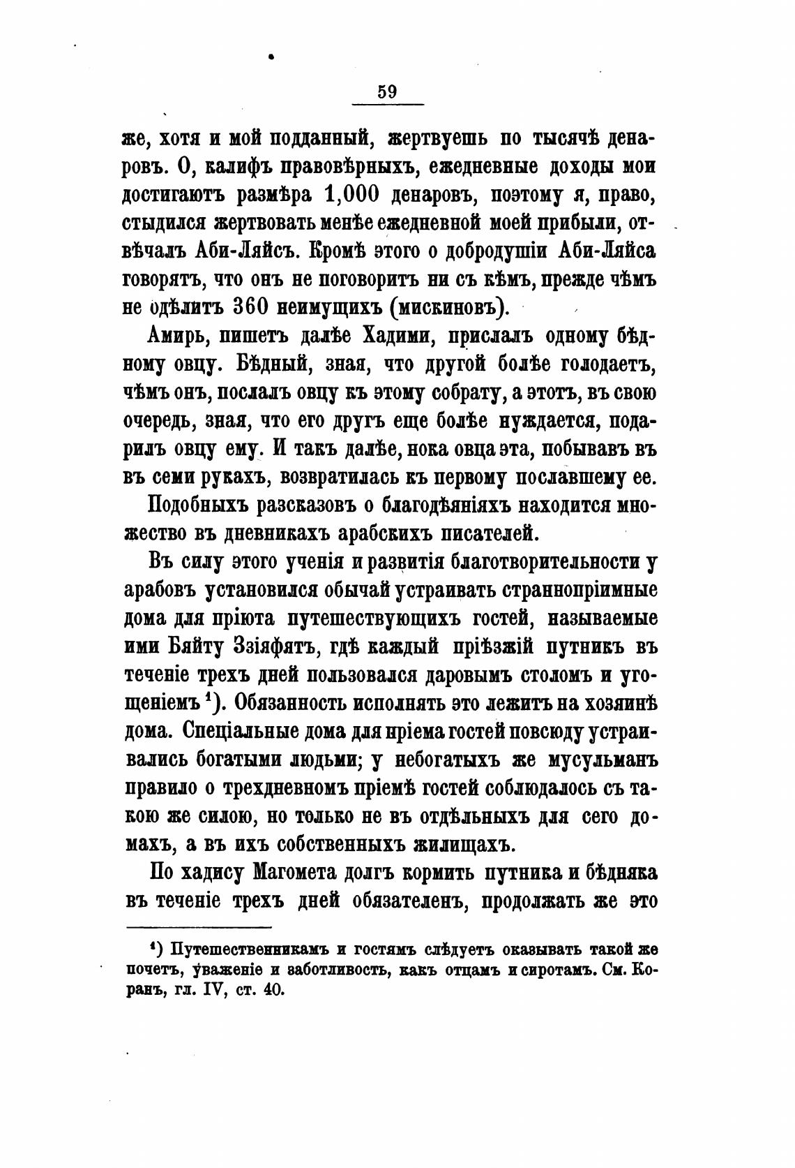 По хадису Магомета долгъ кормить путника и 6Ынява