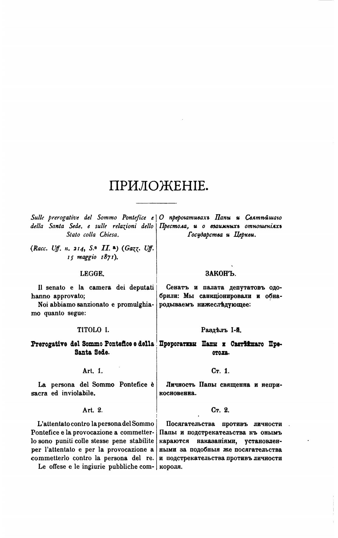 La persona del Sommo Ponteficee Личность Папы священна и непри-