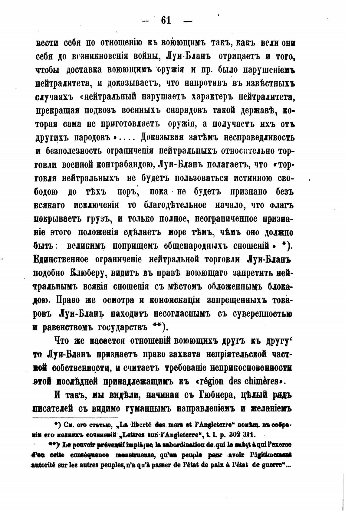товли военной контрабандою, Луи-Бланъ полагаетъ, что «тор•