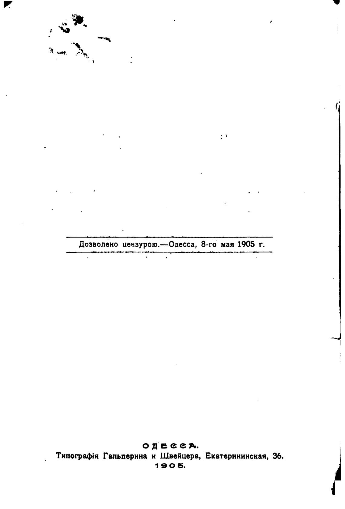 Дозволено цензурою.—Одесса, 8-го мая 1905 г.