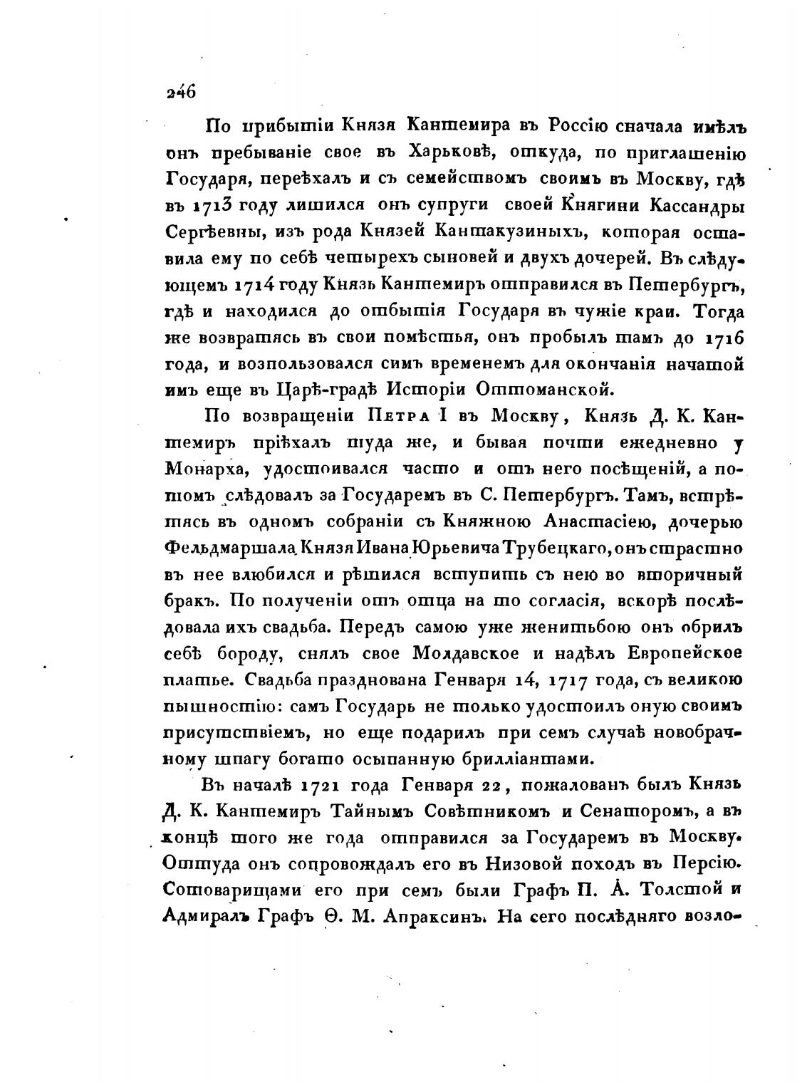 ющемъ 1714 году Князь Кантемиръ отправился въ Петербург»,