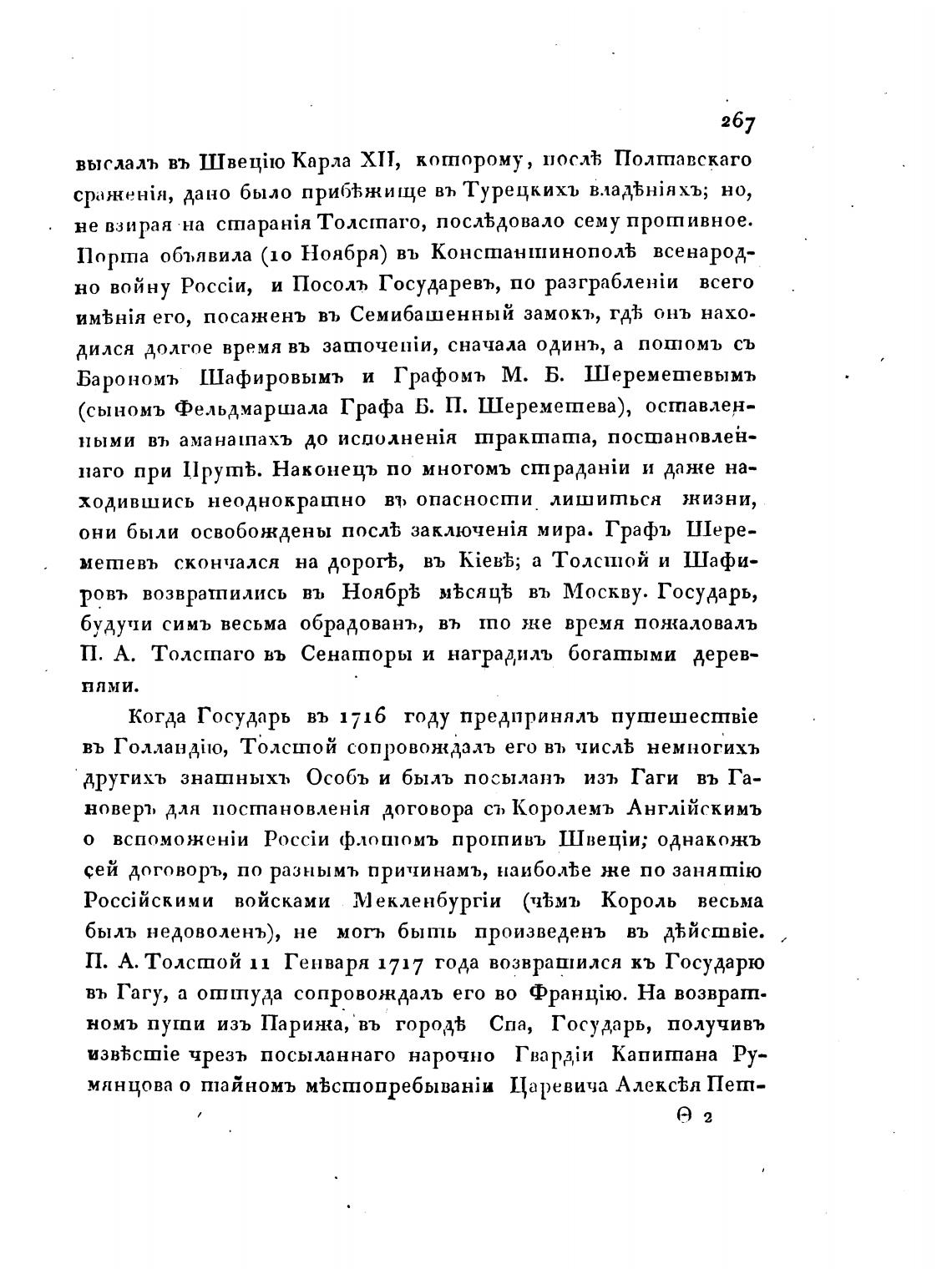 П. А. Толстой 11 Генваря 1717 года возвратился кь Государю