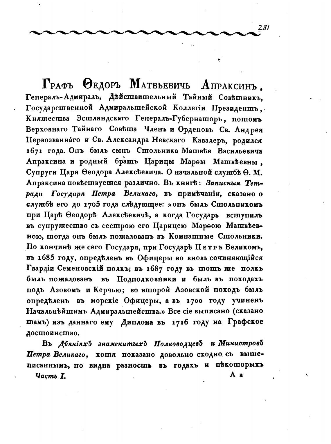 ГРАФЪ ОЕдоръ МАТВЬЕВИЧЬ АпрАксинъ .