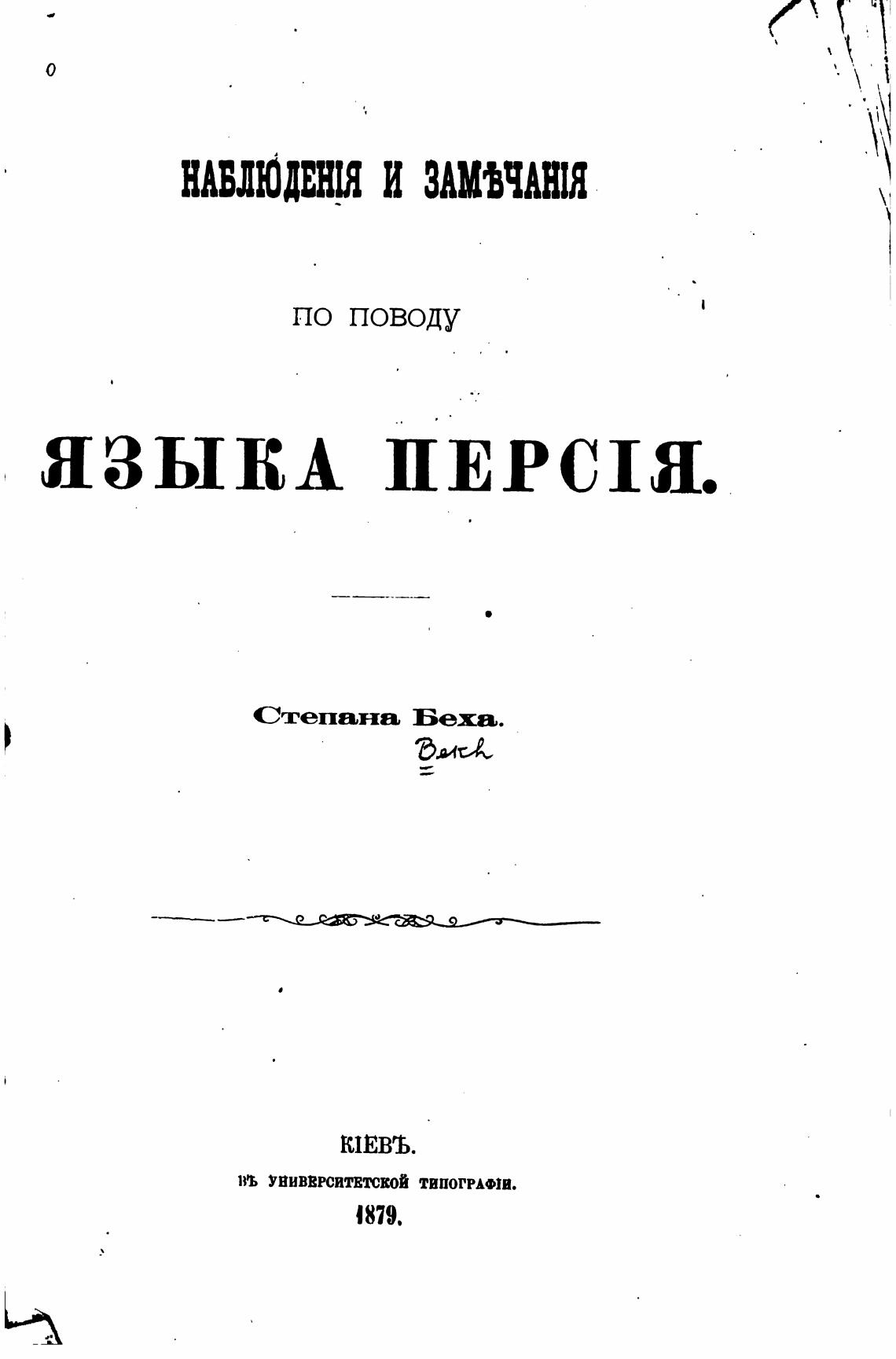 Наблюдения и замечания по поводу языка Персия. - Бех Степан
