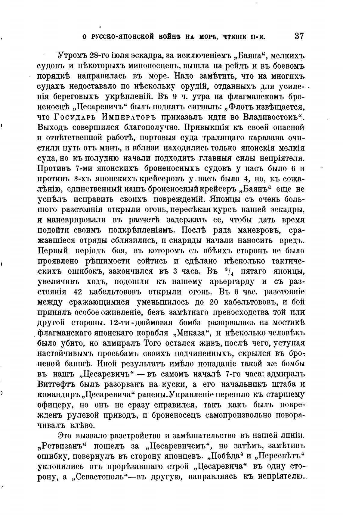 было убито, но адмираль Того остался живъ, послев чего, уступая
