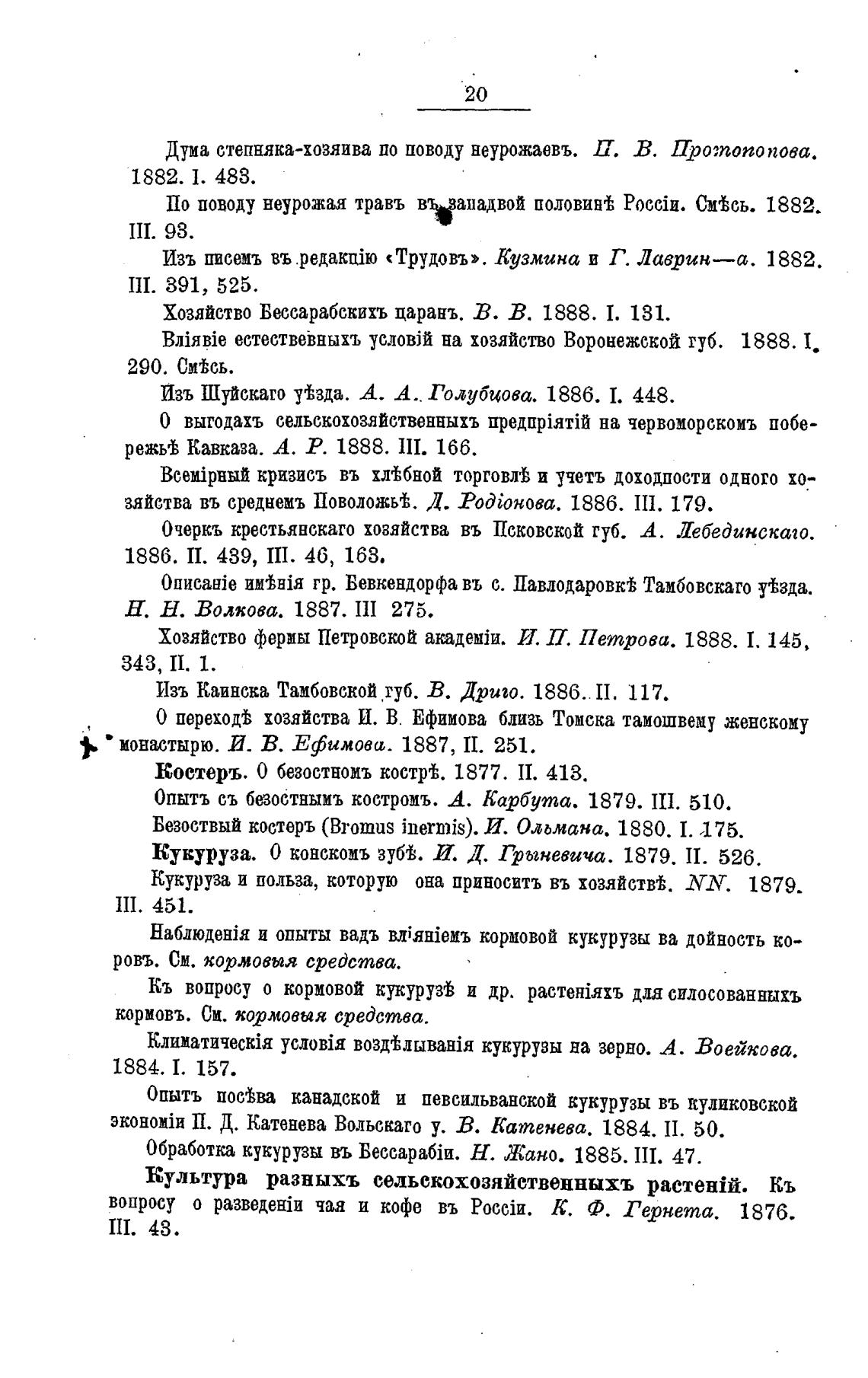 Кукуруза. О конскомъ зуб. И. Д. Грыневича. 1879. II. 526.
