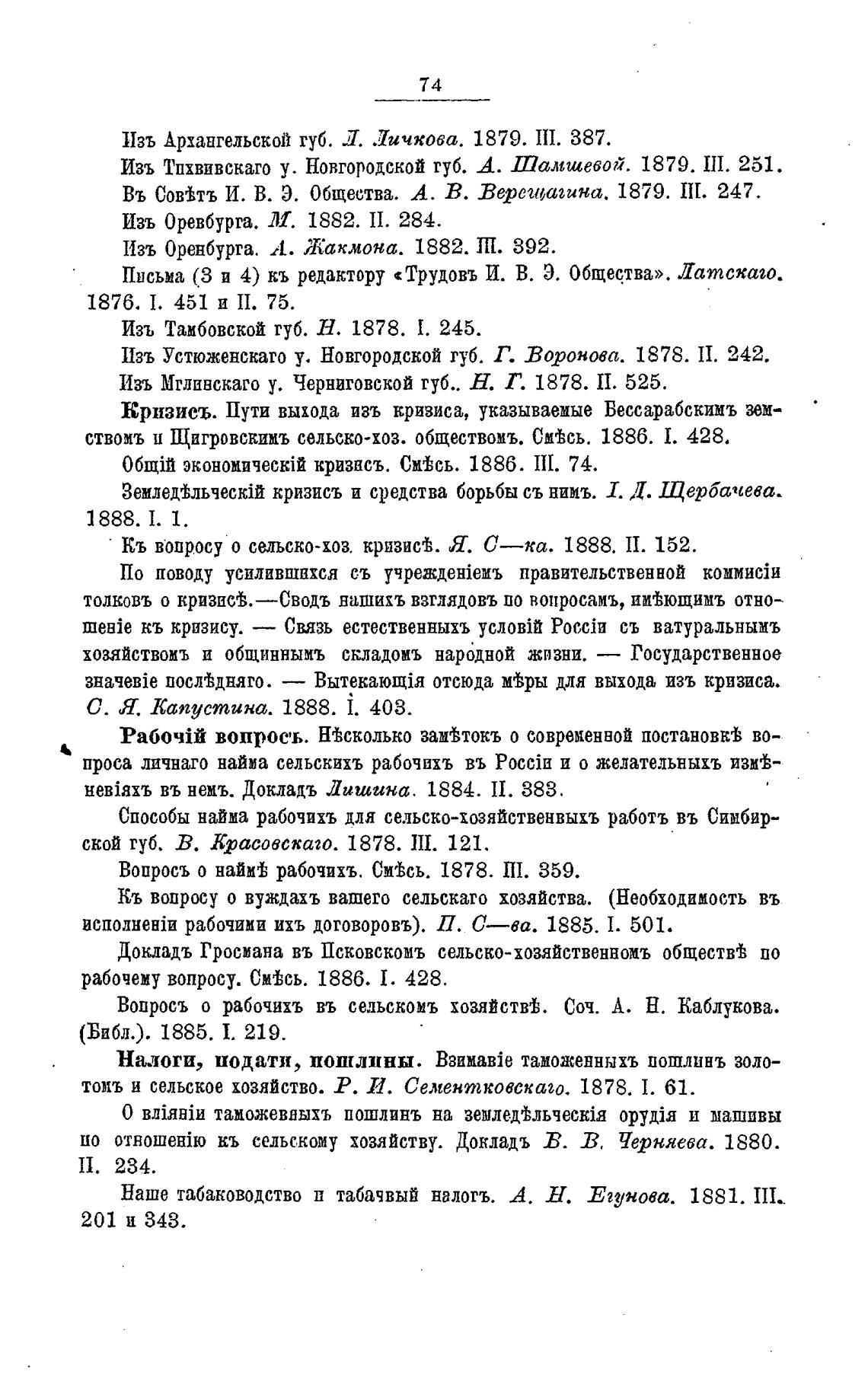 Кь вопросу о сельско-хоз. кризис±. Я. С—ка. 1888. II. 152.