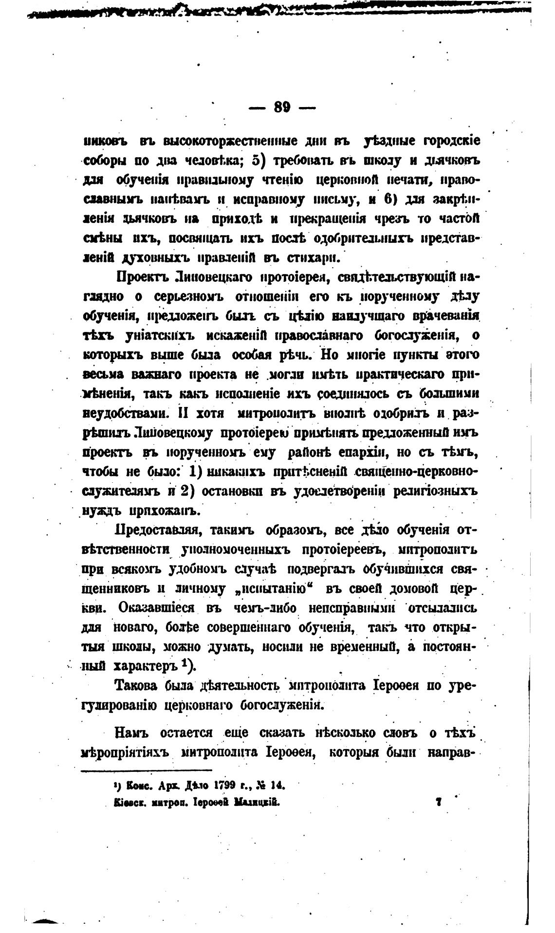 Проекть Линовецкаго npoT0iepeH, на-