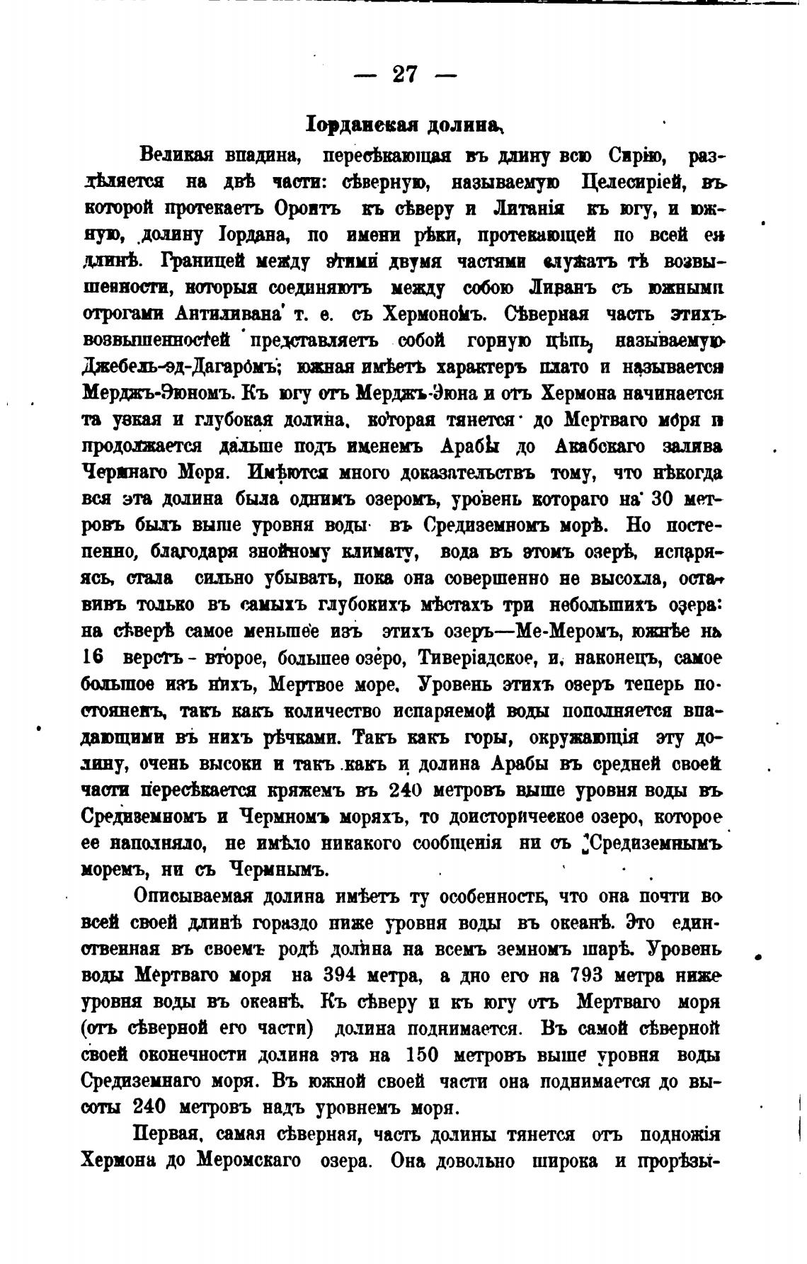 уровня воды въ океан•Ь. Кь бћверу и кь югу отъ Мертваго моря