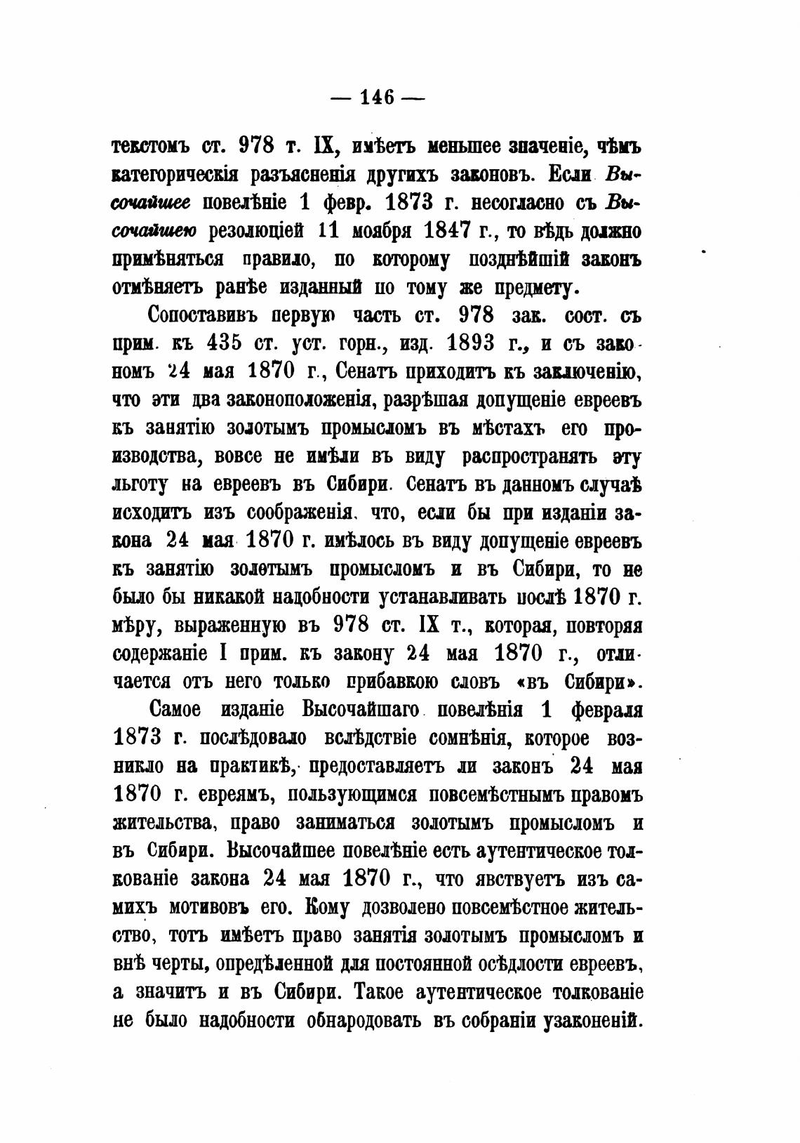 льготу на евреевъ въ Сибири. Сенать въ данномъ слутм