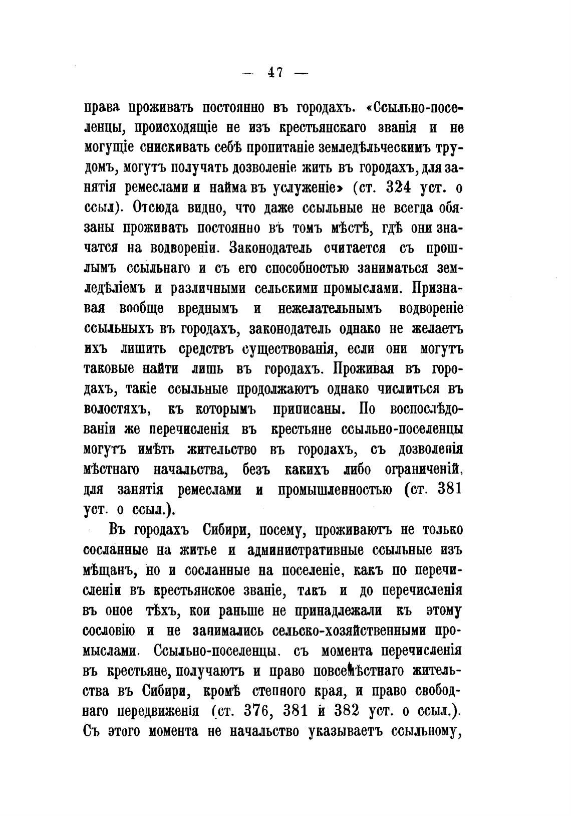 ссыльныхъ въ городахъ, законодатель однако не желаеть