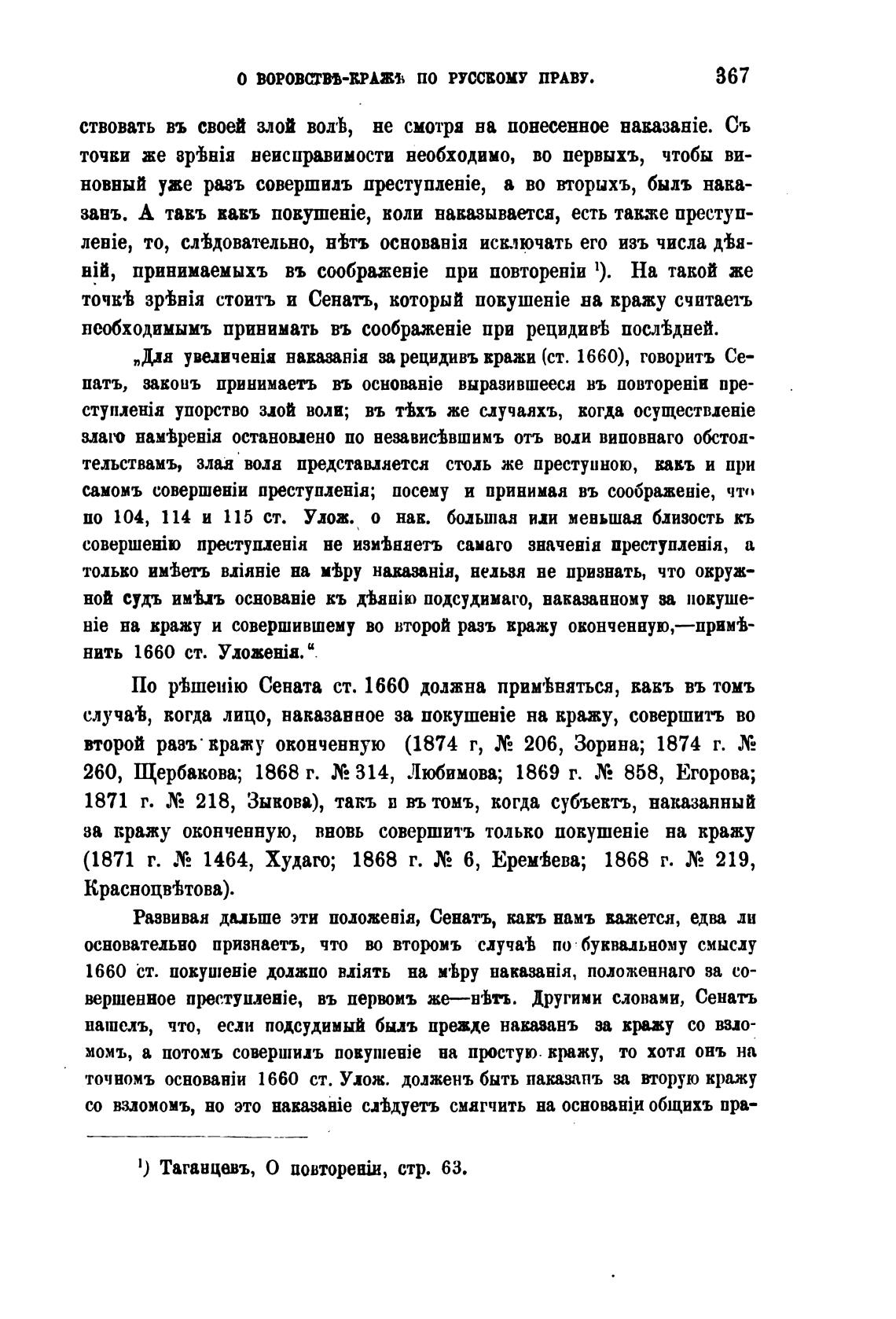 1) Таганцавъ, О B0BTopeHiH, стр. 63.