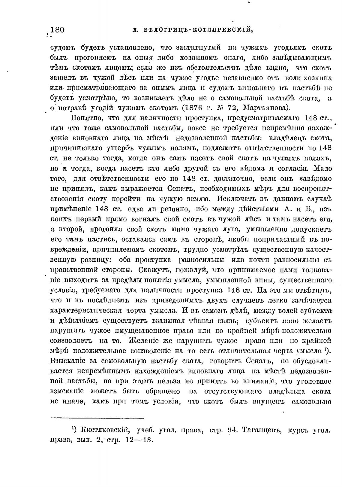 1) КистлковскП?т, учеб. угол. права, стр. 94. Тагапцевъ, курсъ угол.