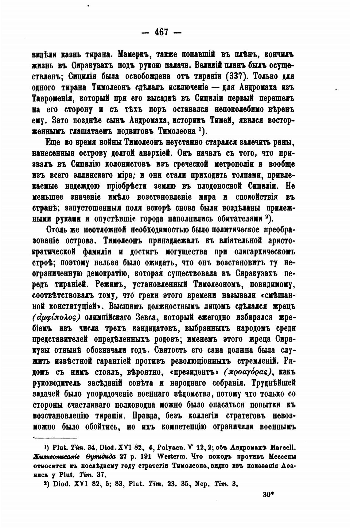 1) Plut. Tim. 34, Diod. ХУП 82, 4, Polyaen. У 12, 2; об•ь Авдромахт Marcell.