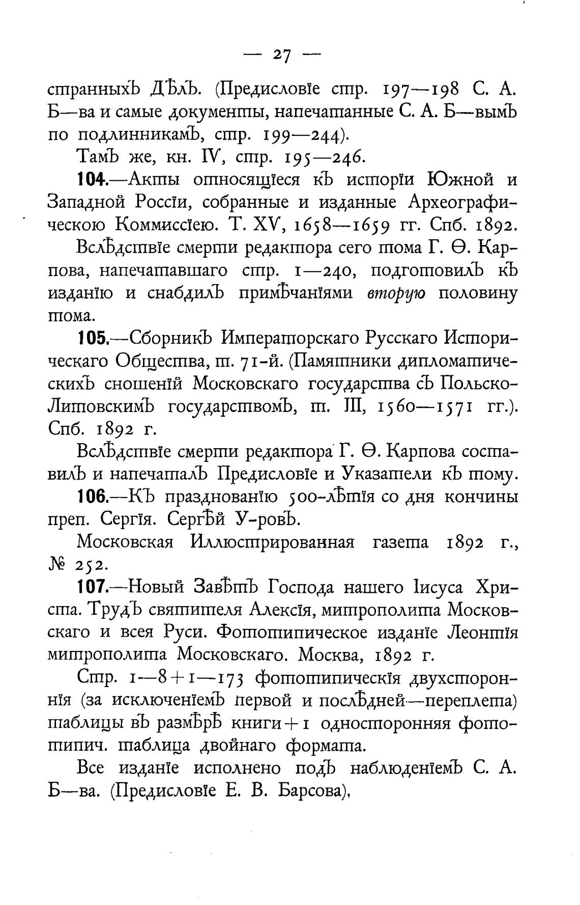 Б—ва. (Предисловхе Е. В. Барсова),