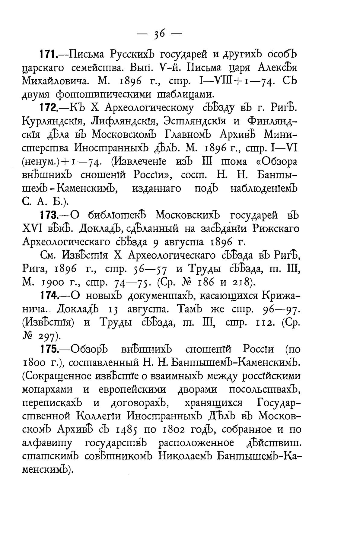 внЂшнихЪ сношентй Росс1и», сост. Н. Н. Бангпы-