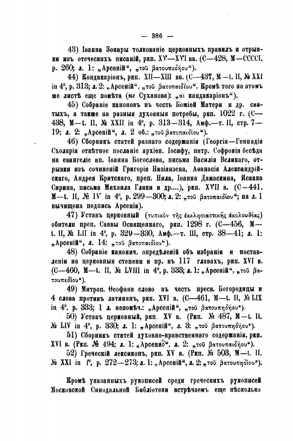 указанныхъ рукописей среди греческихъ рукописей