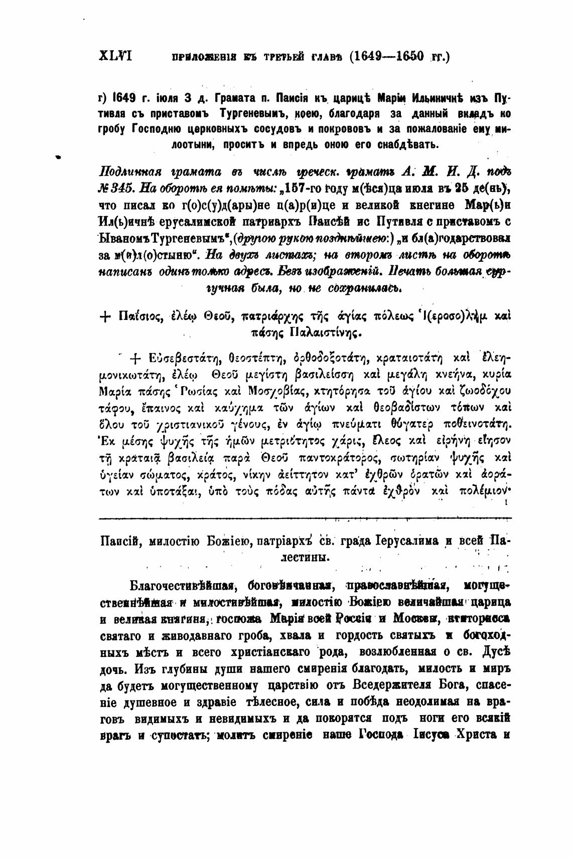 еруеалиисвой патриврхъ Паиси ис Путивля с приспвомъ с
