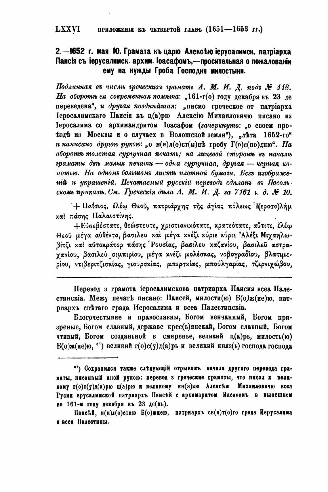 Перевод з грамота iepoca.Il3Mck0Ba патриарха Паисия всеа Пале-