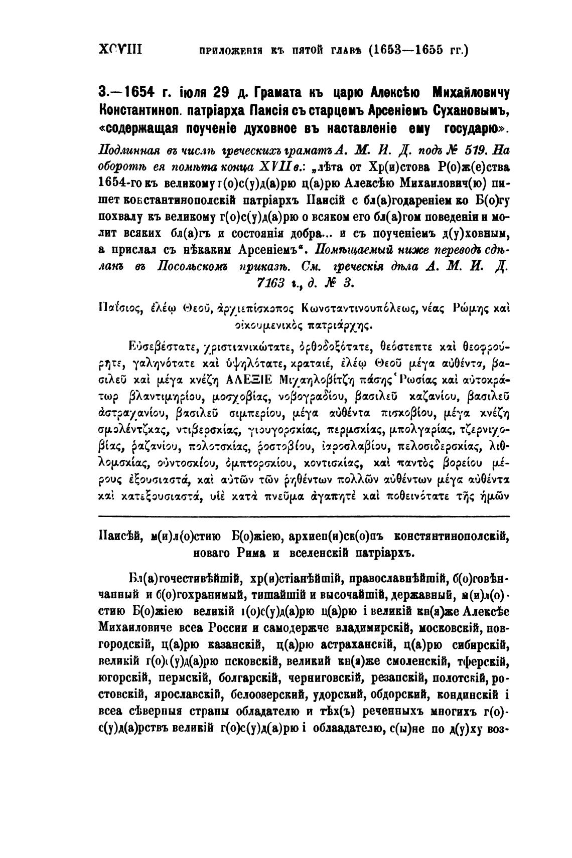 приложвни кт, пятой ГЛАВВ (1653—1655 гг.)